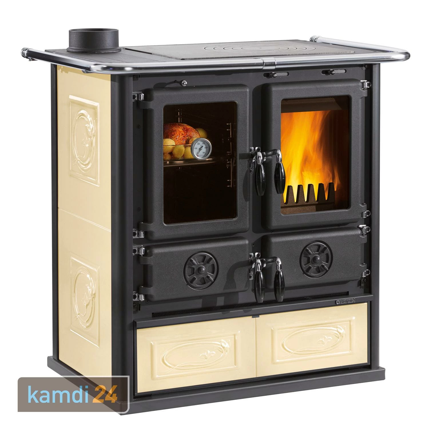 übernimmt alle Koch- und Backfunktionen und macht Sie dabei unabhängig von Strom, Gas oder Öl. Das in der Backfachtür integrierte Thermometer lässt Sie die Backtemperatur leicht im Auge behalten. Neben der Kochplatte verfügt der Küchenofen über eine Aussparung für ein , das Sie ebenfalls in unserem Shop kaufen können.