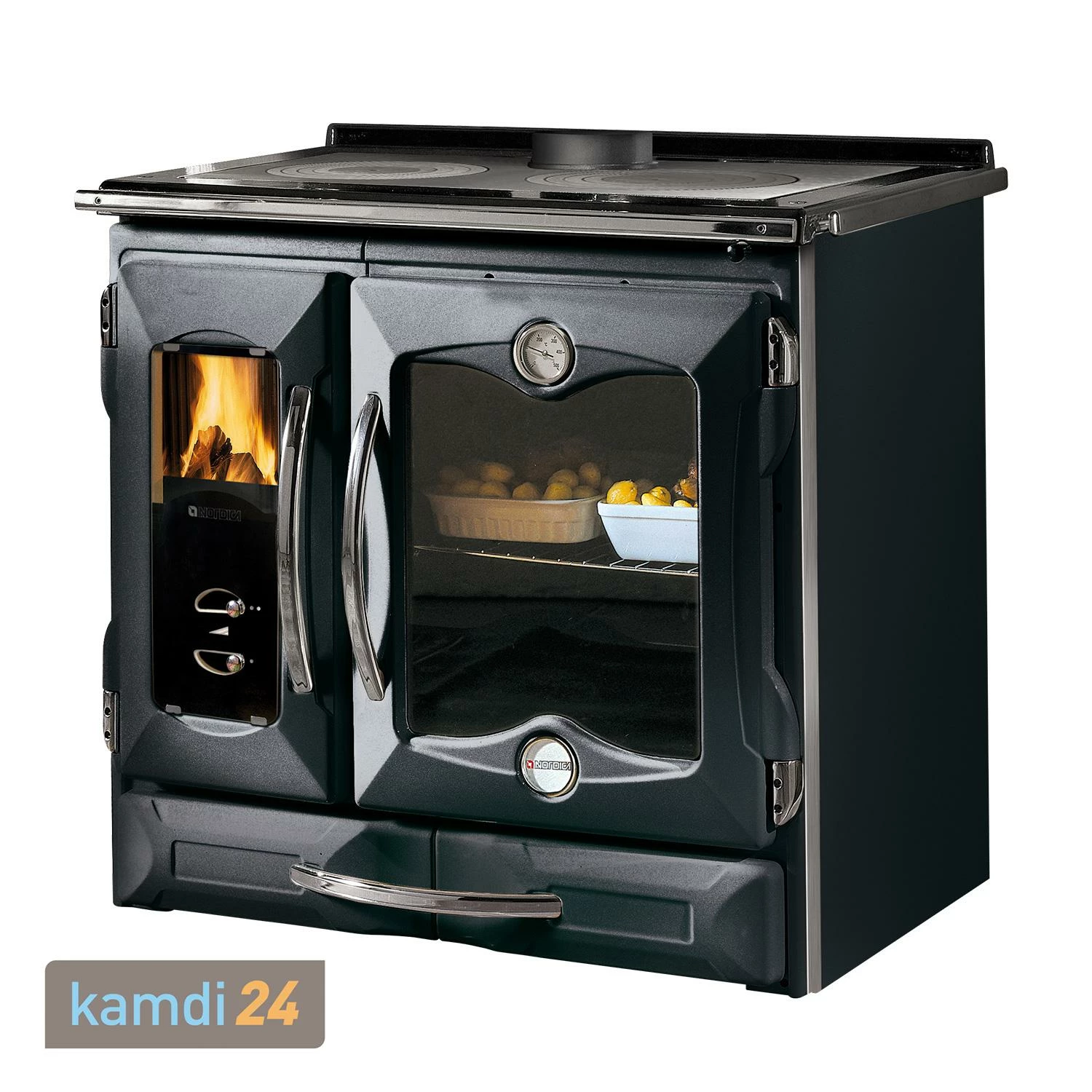 Der massive von besitzt zwei große und ein mit integriertem Thermometer. Der kleine Feuerraum mit Doppelglastür beheizt Räume bis258 m³. Dank seiner edlen Verkleidung aus emailliertem passt der optisch perfekt in klassische und moderne Küchen. Wählen Sie Ihren Favoriten einfach über das Varianten-Menü aus.