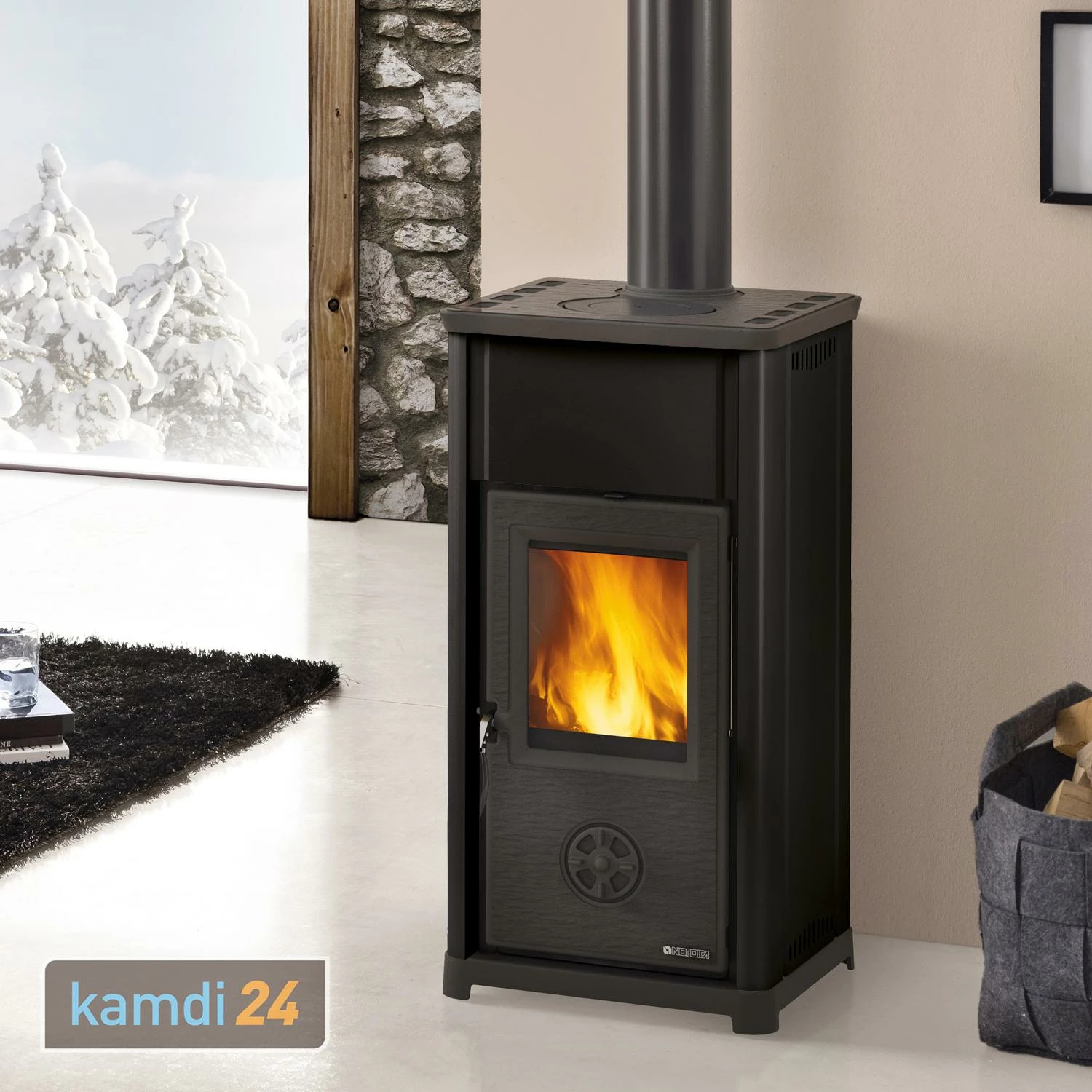 Formschöne Heizkraft für Ihr Wohnzimmer: Mit beheizt der von Räume bis . Dank seiner hochwertigen Verkleidung aus wirkt auf zurückhaltende Weise elegant. Die Abdeckplatte des schlanken Ofens besteht aus Gusseisen und ist als angelegt.