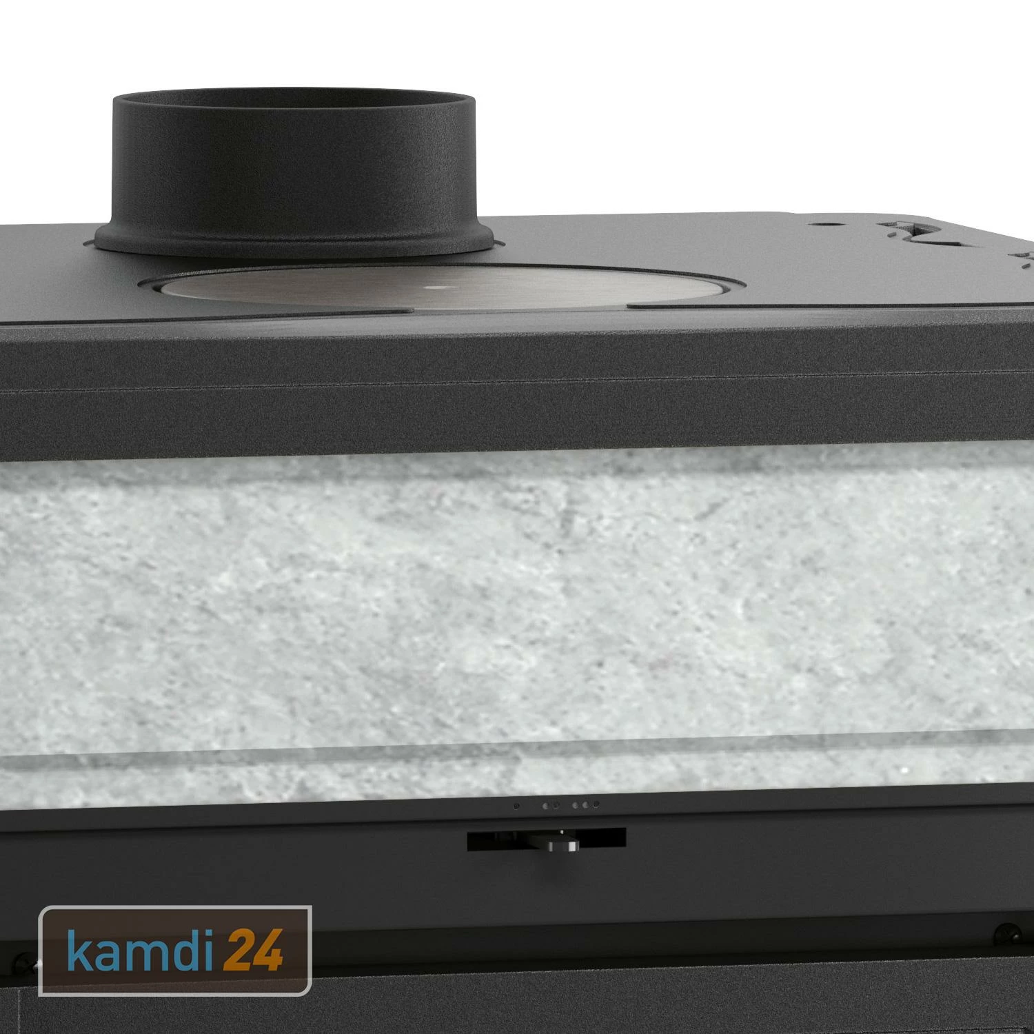 Der Kamin kann mit weiteren Ausstattungsmerkmalen überzeugen: einem Sichtfenster aus Keramikglas mit sowie ein für die Brennrückstände und ein zur Aufbewahrung des Brennholzes. Ein Highlight ist zudem die Abdeckplatte auf der sich ein befindet, das zum Warmhalten und Zubereiten von Speisen genutzt werden kann.