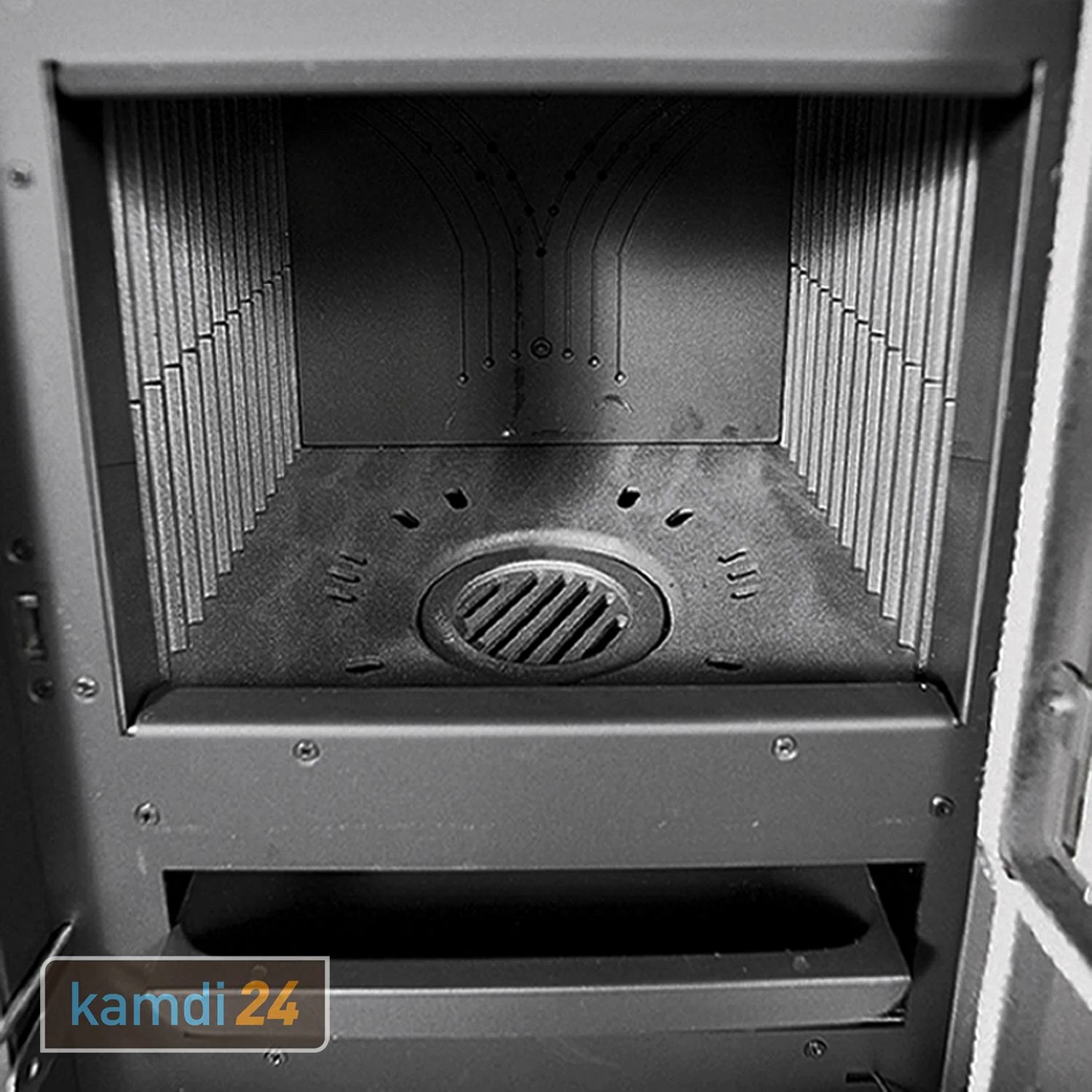 Zum Ausstattungsumfang des wasserführenden Holzofens gehört weiterhin ein praktisches Aschefach zur mühelosen Entleerung der Brennrückstände. Durch den lassen sich Asche und Verbrennungsreste sehr einfach zuvor vom Brennraum in den Aschekasten befördern. Die sorgt für einen stets ungetrübten Blick auf das Flammenspiel. Über die kann der Verbrennungsprozess optimal gesteuert werden.