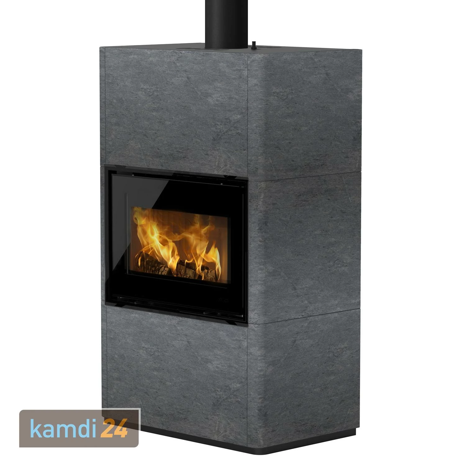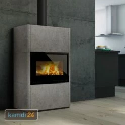 Die geradlinige Architektur macht es möglich, den Kaminofen in jeden modernen Raum zu integrieren. Diese Kamine sind in den Varianten Speckstein oder Beton in unserem kamdi24-Shop erhältlich.