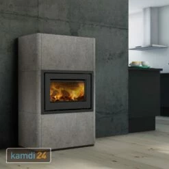 Die geradlinige Architektur macht es möglich, den Kaminofen in jeden modernen Raum zu integrieren. Diese Kamine sind in den Varianten Speckstein oder Beton in unserem kamdi24-Shop erhältlich.