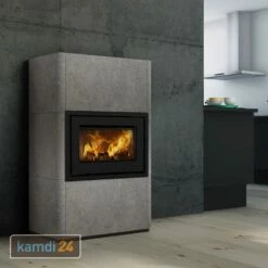 Die geradlinige Architektur macht es möglich, den Kaminofen in jeden modernen Raum zu integrieren. Diese Kamine sind in den Varianten Speckstein oder Beton in unserem kamdi24-Shop erhältlich.