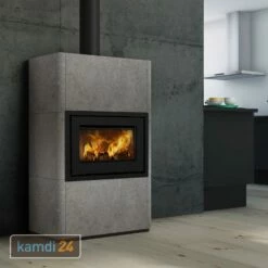Die geradlinige Architektur macht es möglich, den Kaminofen in jeden modernen Raum zu integrieren. Diese Kamine sind in den Varianten Speckstein oder Beton in unserem kamdi24-Shop erhältlich.