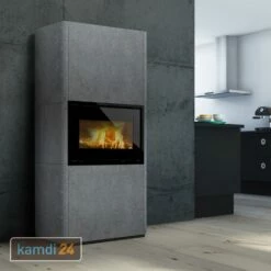Die geradlinige Architektur macht es möglich, den Kaminofen in jeden modernen Raum zu integrieren. Diese Kamine sind in den Varianten Speckstein oder Beton in unserem kamdi24-Shop erhältlich.