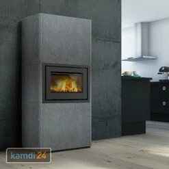 Die geradlinige Architektur macht es möglich, den Kaminofen in jeden modernen Raum zu integrieren. Diese Kamine sind in den Varianten Speckstein oder Beton in unserem kamdi24-Shop erhältlich.