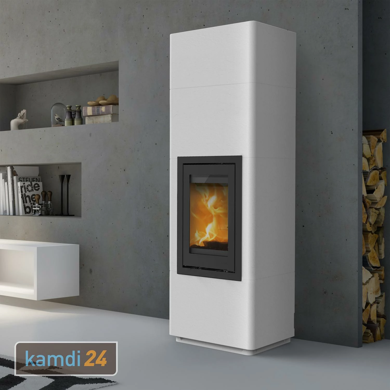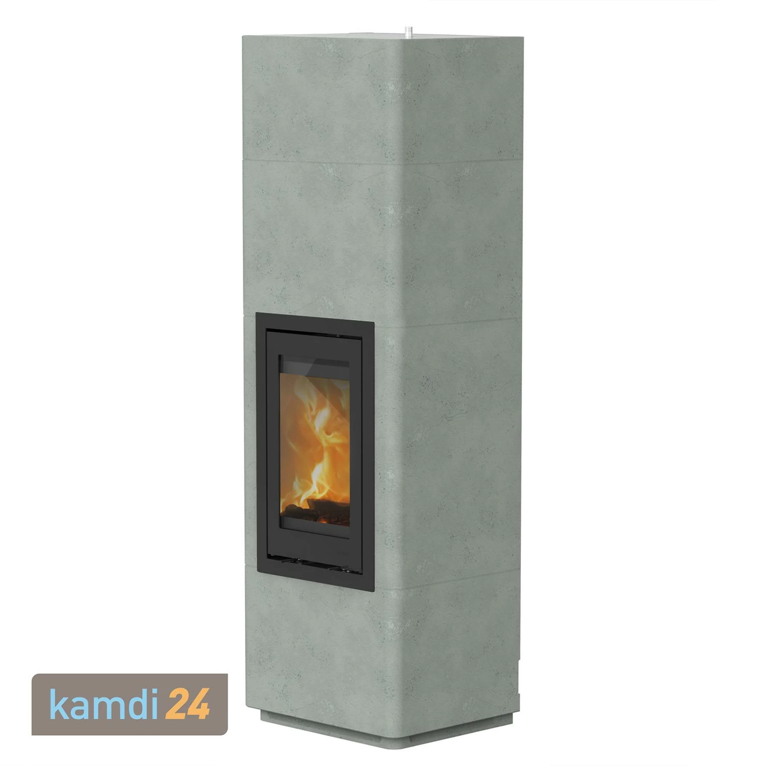 Der mit Betonverkleidung ist geschaffen, um hohe Temperaturen lange zu speichern. Die geradlinige Architektur macht es möglich, den Kaminofen in jeden modernen Raum zu integrieren. wird werkseitig in rohem grauen Beton geliefert und kann in Weiß oder einer anderen Farbe gestrichen werden.