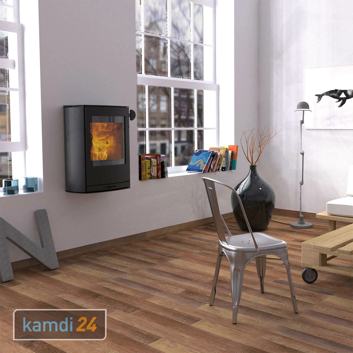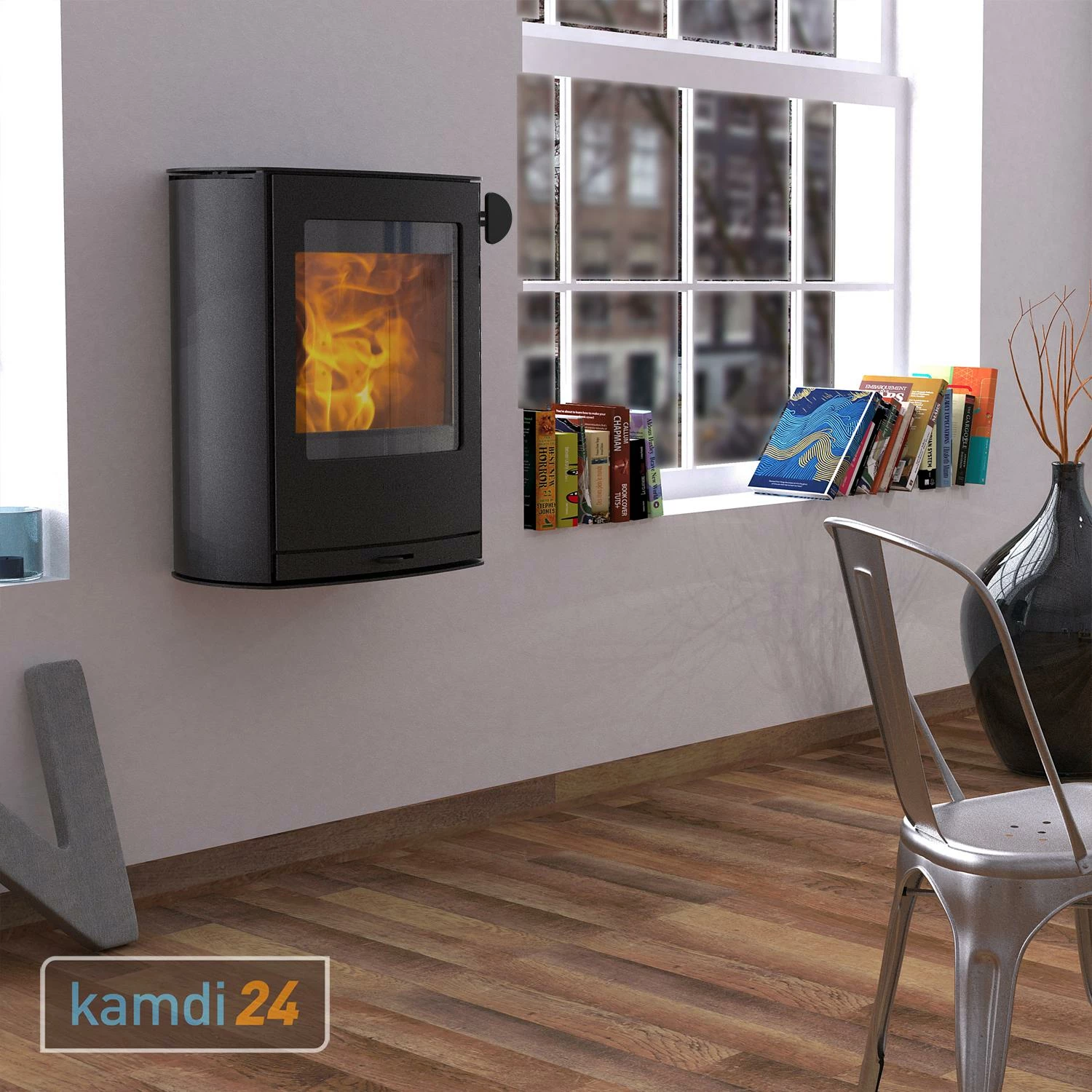 Das zeitlose Design und die Möglichkeit an der Wand zu montieren, machen diesen Kaminofen zu einem außergewöhnlichen Einrichtungsgegenstand. Beachten Sie bitte, dass nur in Verbindung mit nicht brennbaren Wänden und Böden installiert werden darf.