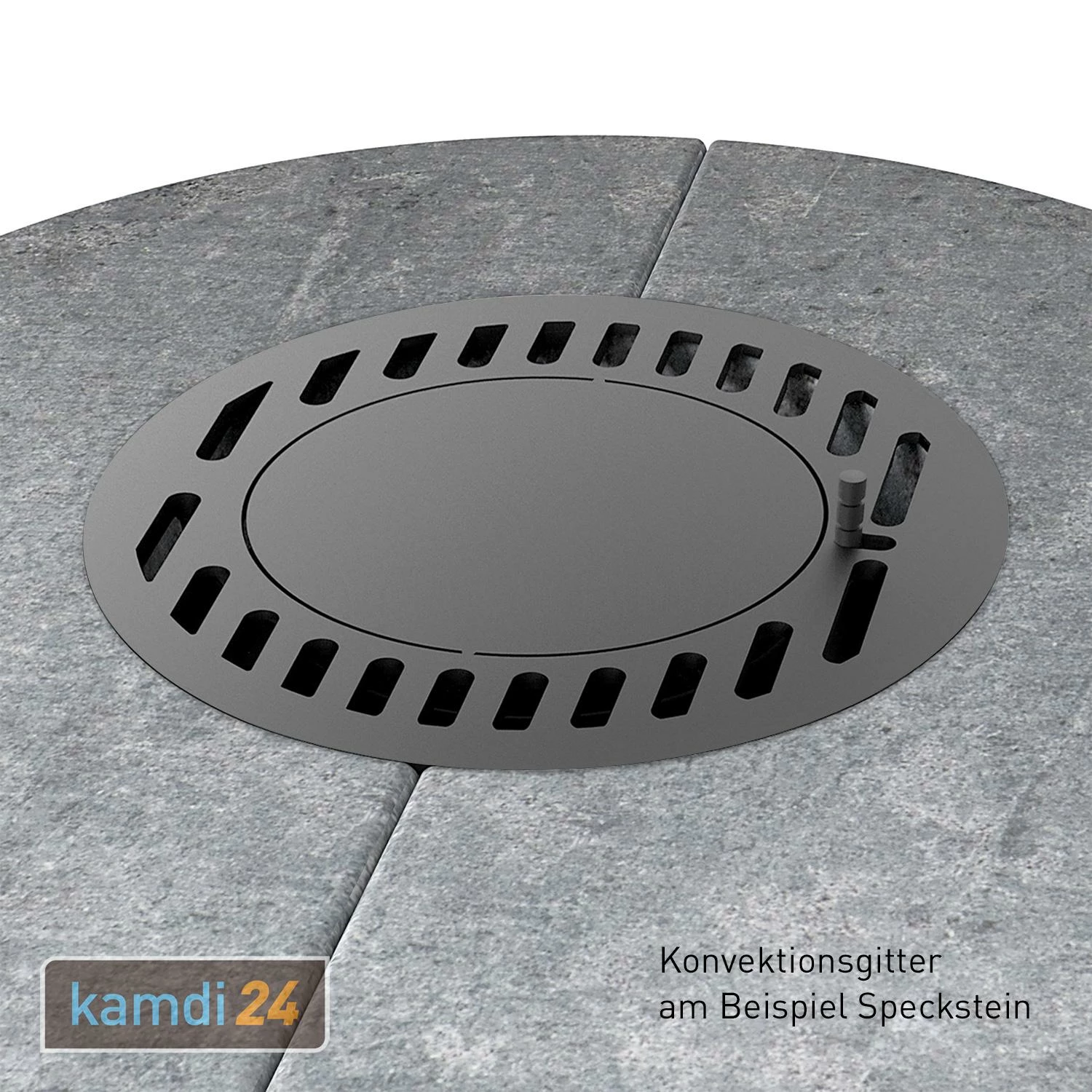 Mithilfe eines kleinen Hebels an der Oberseite des Ofens öffnen oder schließen Sie ein Gitter. Mit diesem Gitter bestimmen Sie darüber, ob der Ofen den Raum oder beheizen soll. Im letzteren Fall nehmen Speicherstein und Steinverkleidung mehr Wärme auf, welche der Kaminofen nach dem Erlöschen des Feuers noch lange an den Aufstellraum abstrahlt.