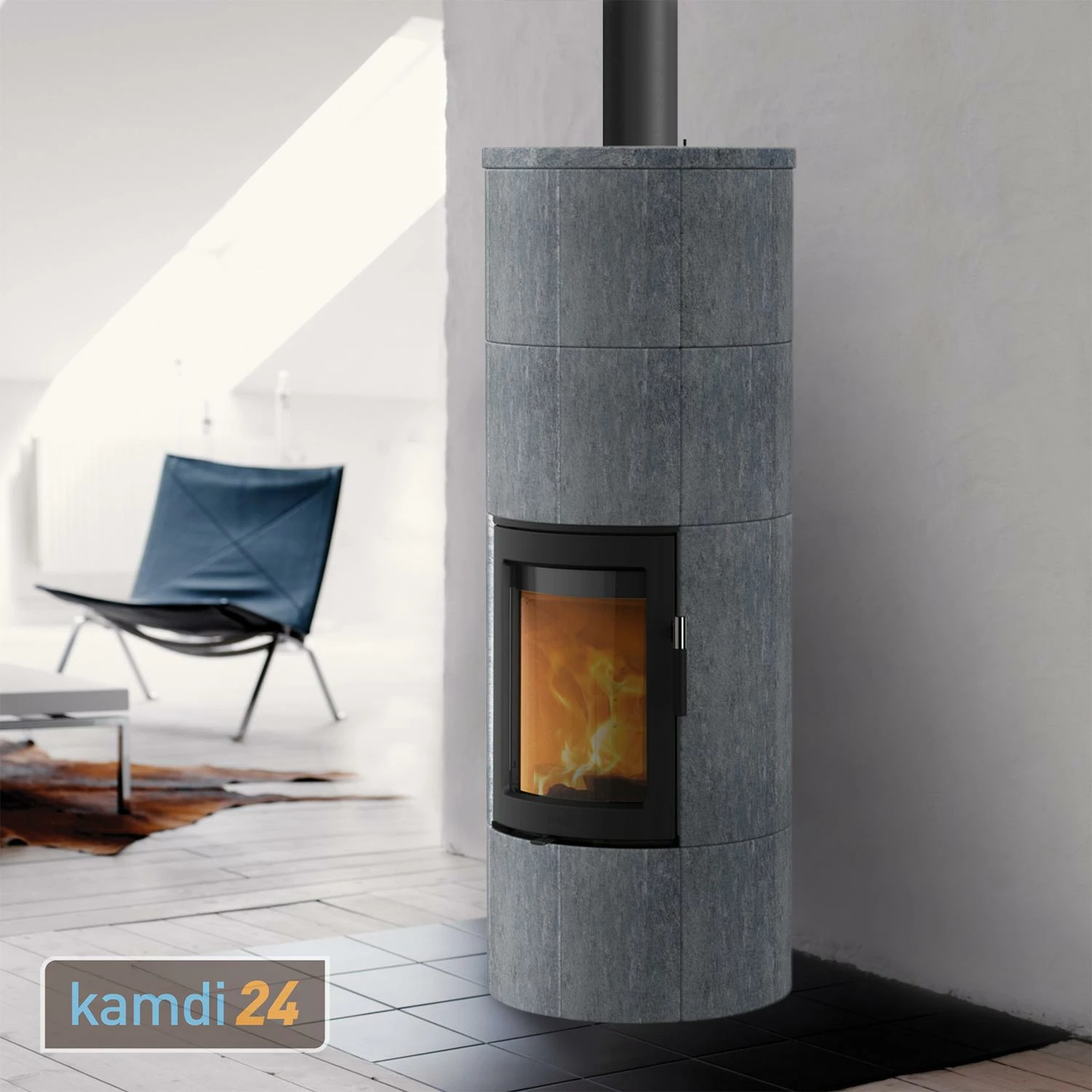 Der von speichert die Wärme durch die Natursteinverkleidung und den Speicherstein noch lange nach dem Abbrand des Feuers und gibt diese langsam an den Aufstellraum ab.