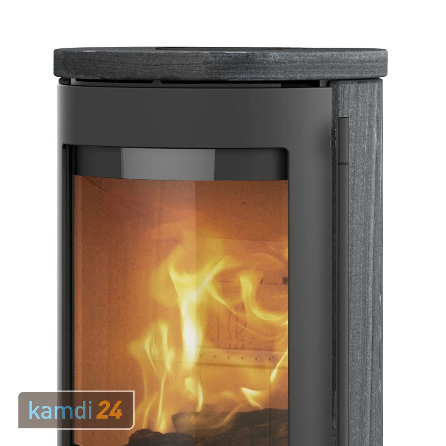 Mit einer und einem beheizt der Kaminofen . Durch die formschöne Gestaltung mit der runden Front und der abgeflachten Rückseite passt der Kaminofen sowohl vor gerade Wände als auch in eine Ecke. Mit der geringen fügt er sich leicht und unaufdringlich in jedes Wohnkonzept ein.