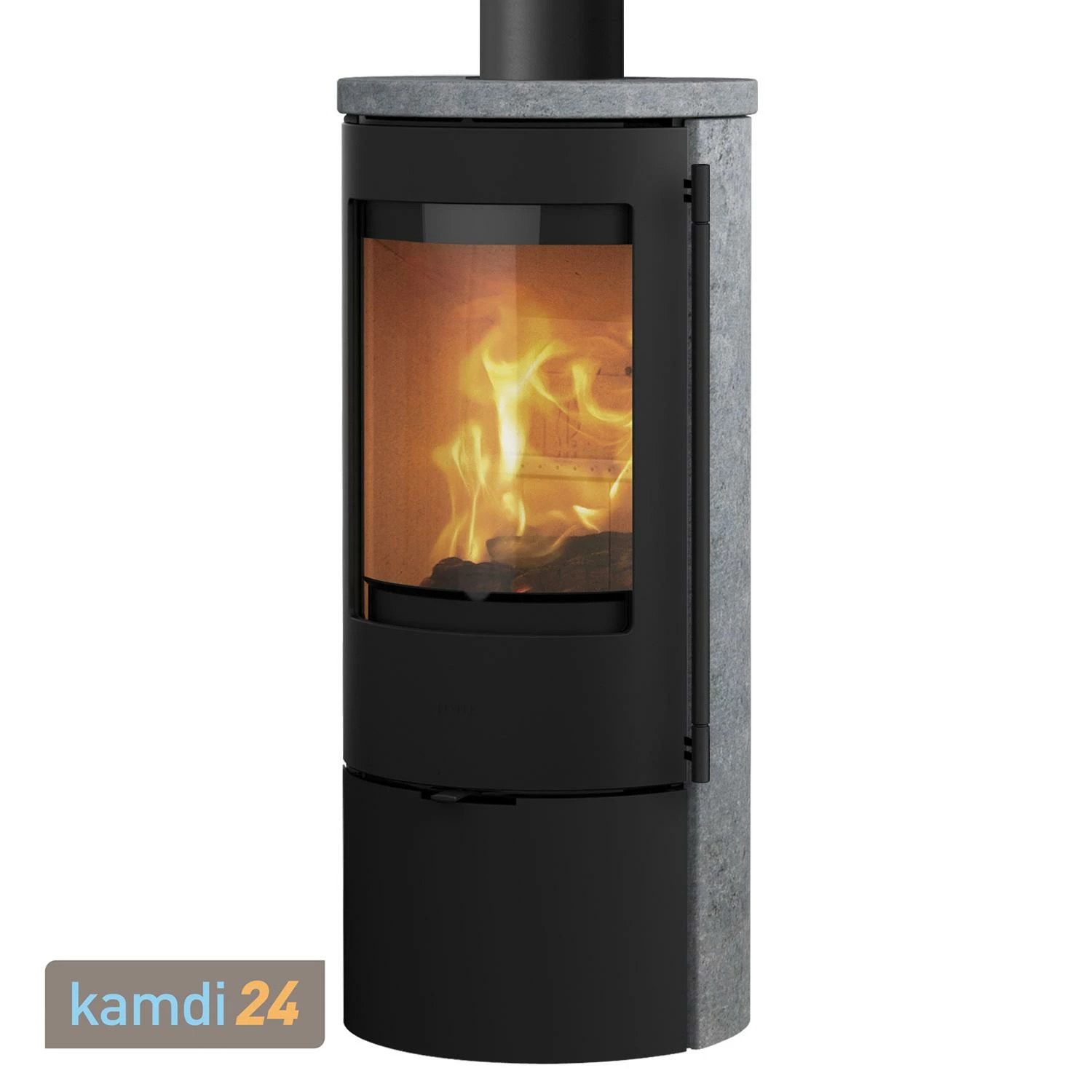 Der Kaminofen mit einer und einem beheizt . Mit der runden Front und der abgeflachten Rückseite passt der Kaminofen sowohl vor gerade Wände als auch in eine Ecke. Durch die geringe Tiefe von weniger als 40 cm findet der Kaminofen überall Platz und fügt sich mit seiner dezenten Gestaltung in fast jedes Wohnkonzept ein.