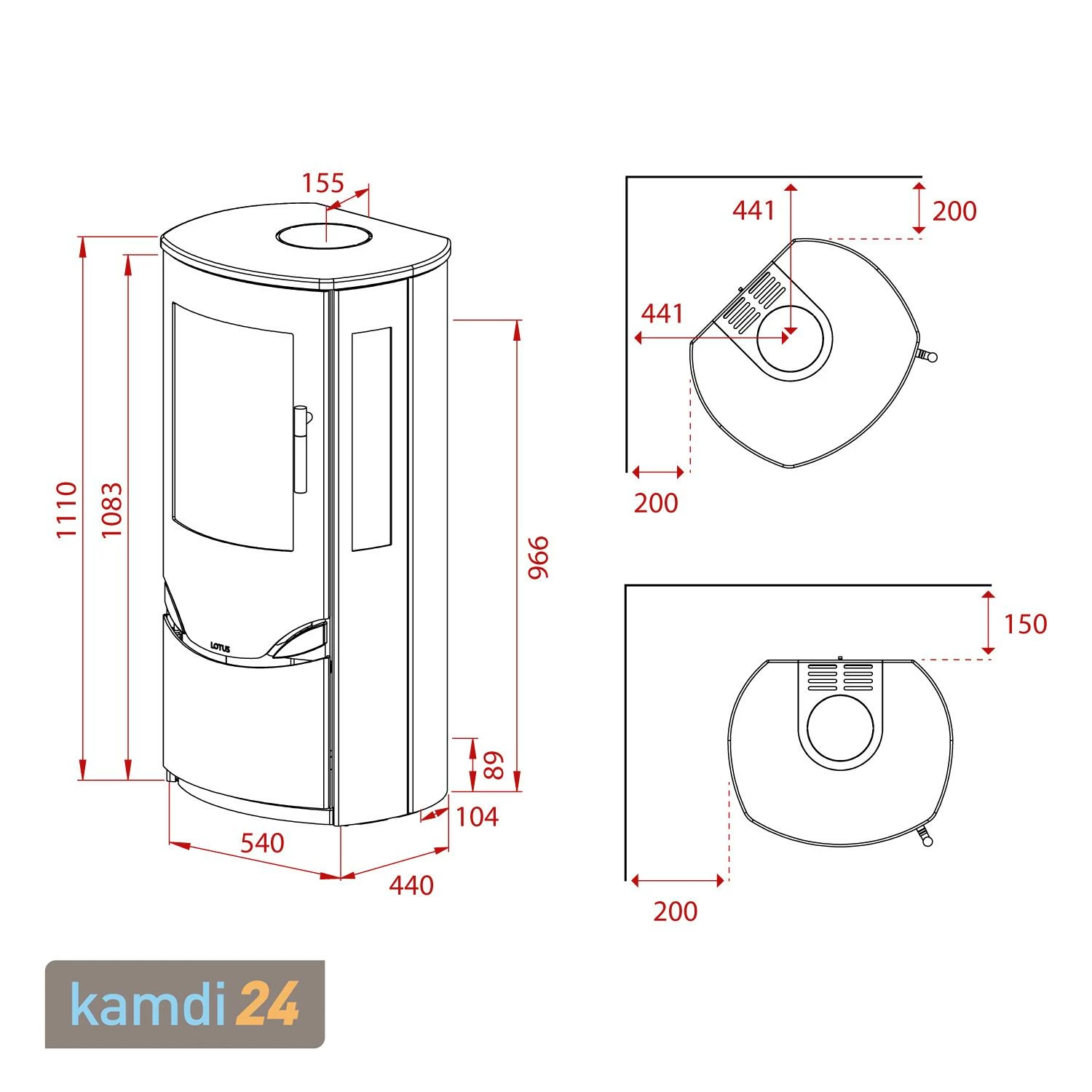 Mit den Seiten aus oder ist der Kaminofen Lotus Prio 5 erhältlich.