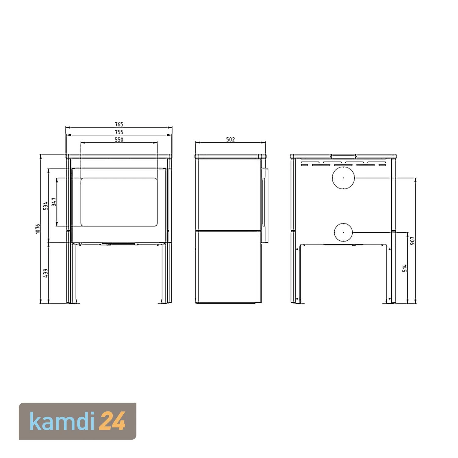 Durch den oberen Rauchrohranschluss kann der Kaminofen platzsparend nah an der Wand aufgestellt werden. Es ist jedoch auch möglich, dass Rauchrohr hinten anzuschließen.