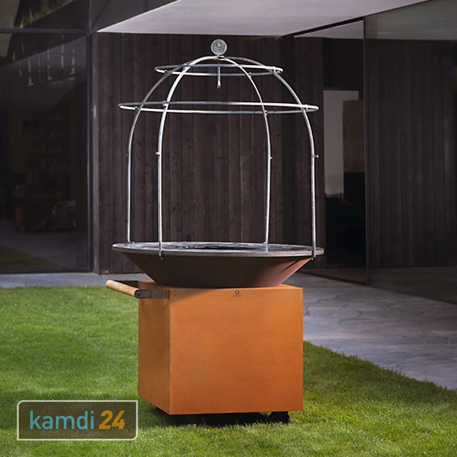 Der von ist das perfekte Grill-Accessoire für die zum Präsentieren deiner Grill- und Kochkünste oder zum Showkochen. An die kuppelförmige, an einen Käfig erinnernde Konstruktion kannst du an Stahlstangen aufhängen, damit diese langsam in der Hitze des Feuers garen. Du kannst Spieße und S-Haken zum Befestigen des Grillguts an den Stangen verwenden.