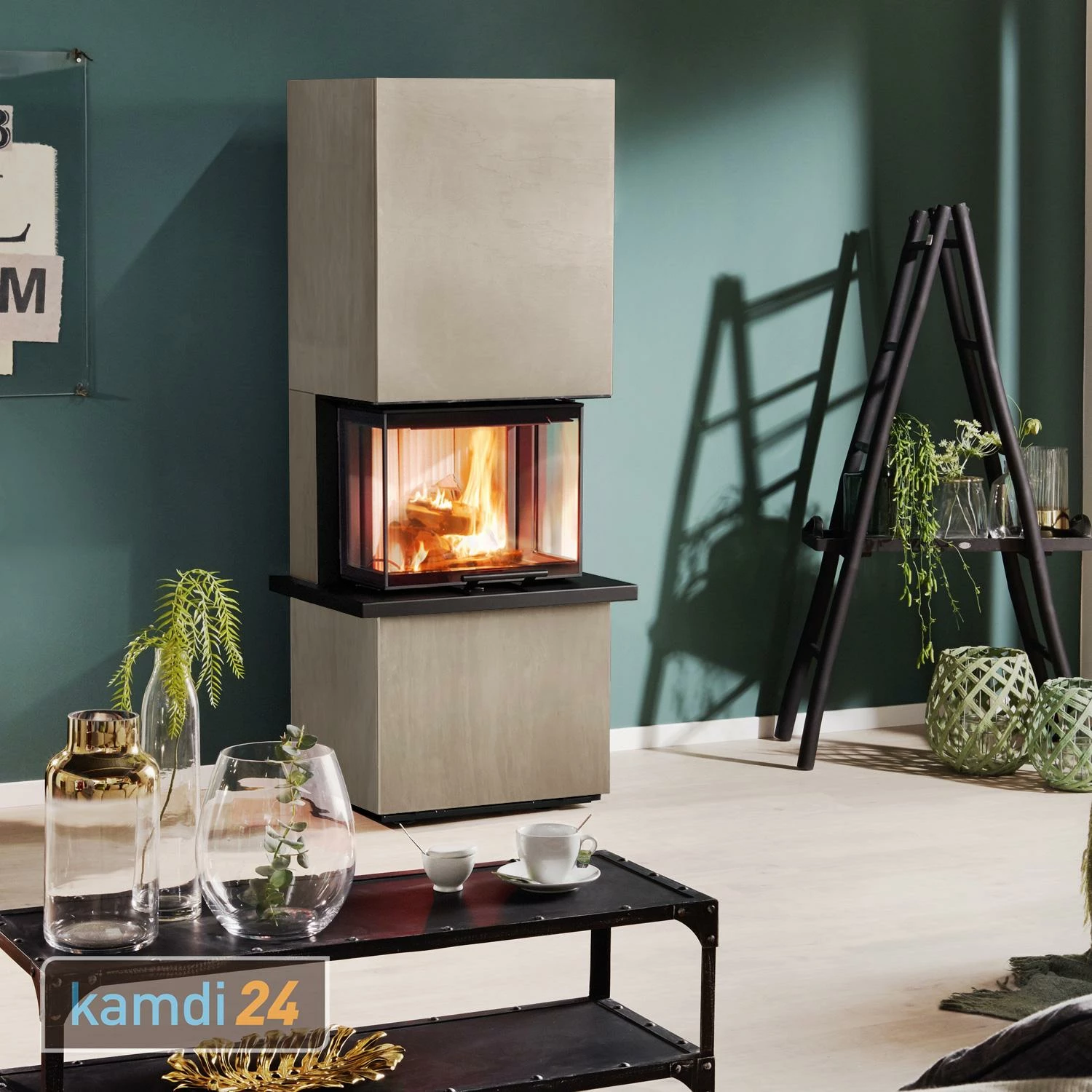 Mit seiner außergewöhnlichen Natursteinverkleidung in vier verschiedenen Varianten, sticht der von sofort ins Auge! Die wurde bewusst etwas nach innen versetzt, sodass die prägnante Form des Holzofens besser zur Geltung kommt. Zum Einlegen der Holzscheite lässt sich die Scheibe nach oben klappen und bietet gleich von mehreren Seiten einen guten Blick auf das faszinierende Flammenspiel. Zur einfachen Reinigung können die beiden Seitenscheiben aufgeklappt werden. Und damit Sie die gemütliche Kaminwärme auch nach dem Abbrand noch nutzen können, kann optional mit dem Wärmespeicherstein nachgerüstet werden.