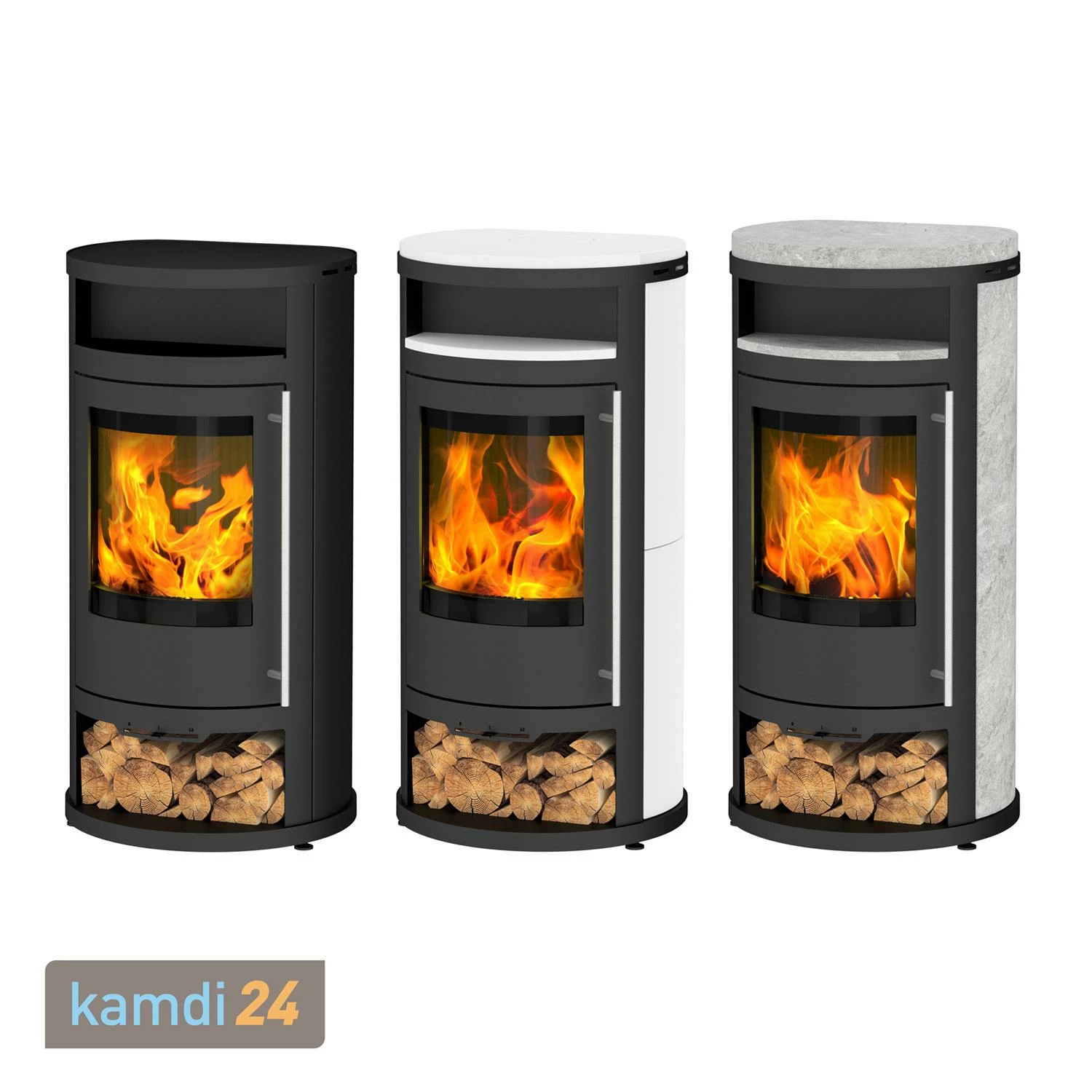 Wir bieten Ihnen den Kaminofen klassisch in schwarzem Stahl, mit einer hochwertigen Natursteinverkleidung in Serpentin, in Keramik Weiß sowie mit einer Keramik Sonderglasur. Wählen Sie Ihren Favoriten einfach über unser Varianten-Menü aus.
