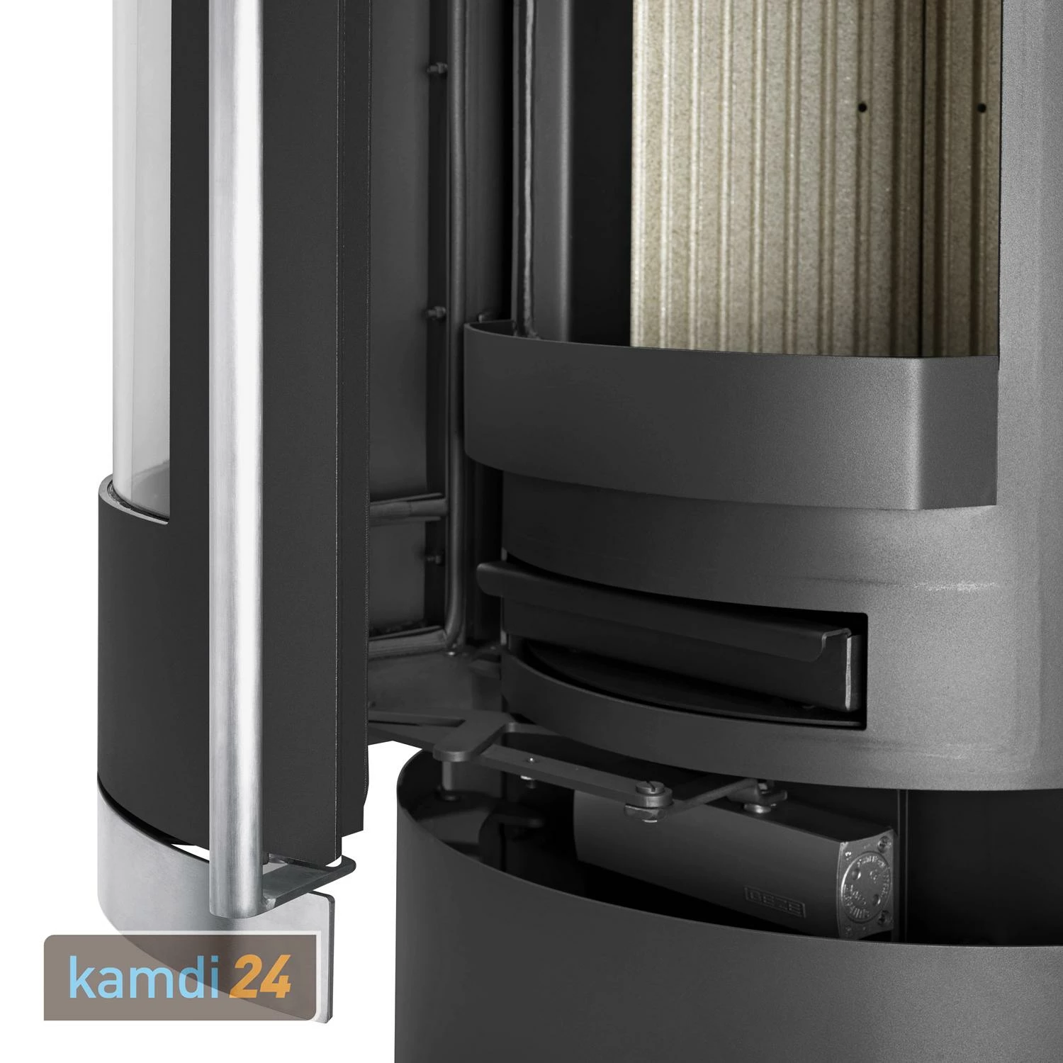 Die Tür ist mit einer selbstverriegelnden Verschlussautomatik ausgestattet. Die selbstverriegelnde Mechanik lässt beim Schließen einen Verschlussriegel zuschnappen und hält damit die Brennraumtür sicher zu.