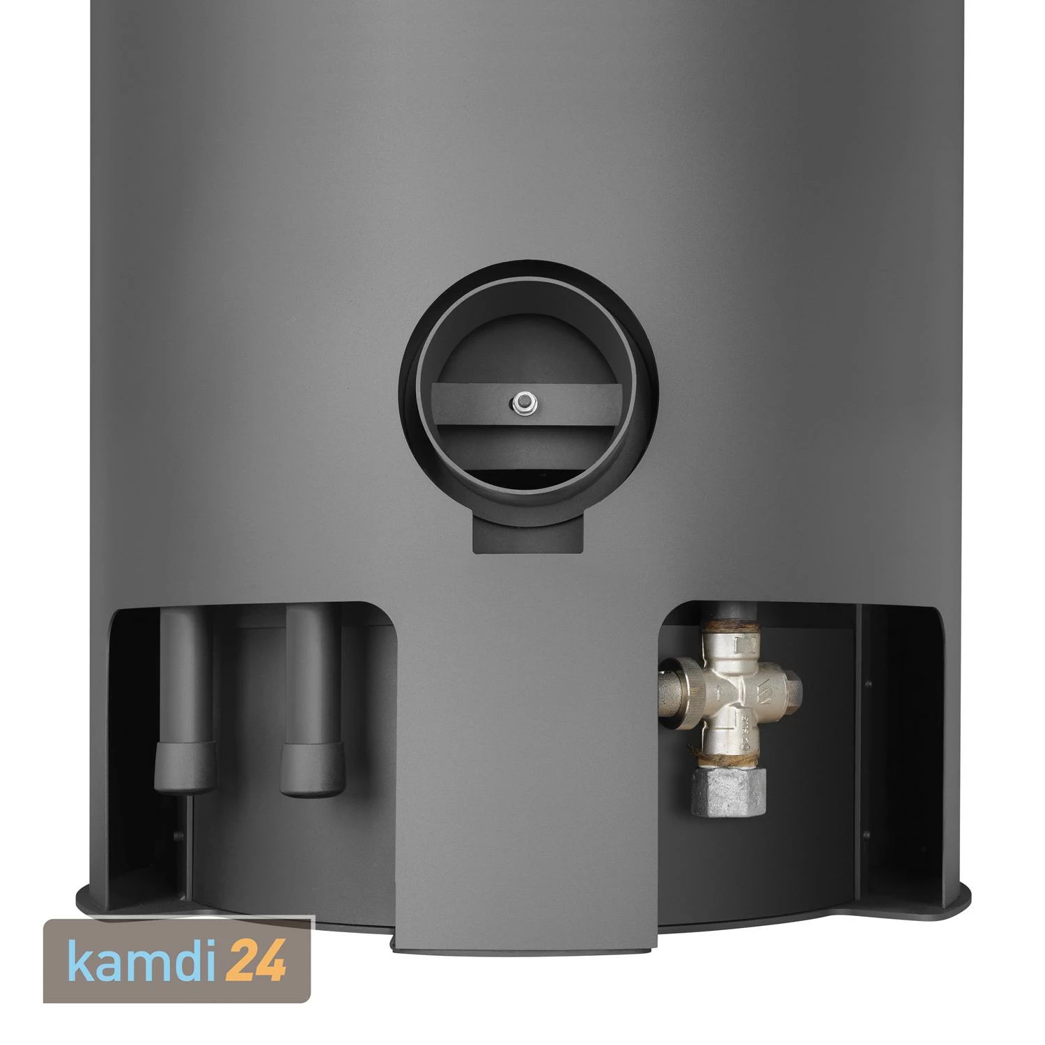 ist mit einer und sorgt damit am Aufstellort sowie im ganzen Haus für angenehme Wärme. Neben der Integration in Ihr Heizungssystem ist auch die Anbindung an die Brauchwassererwärmung möglich. An der Rückseite sind die Vor- und Rücklaufleitungen, der Wärmetauscher mit integrierter thermischer Ablaufsicherung, die Tauchhülse für den Reglerfühler und der Füll- und Entleerungshahn installiert.
