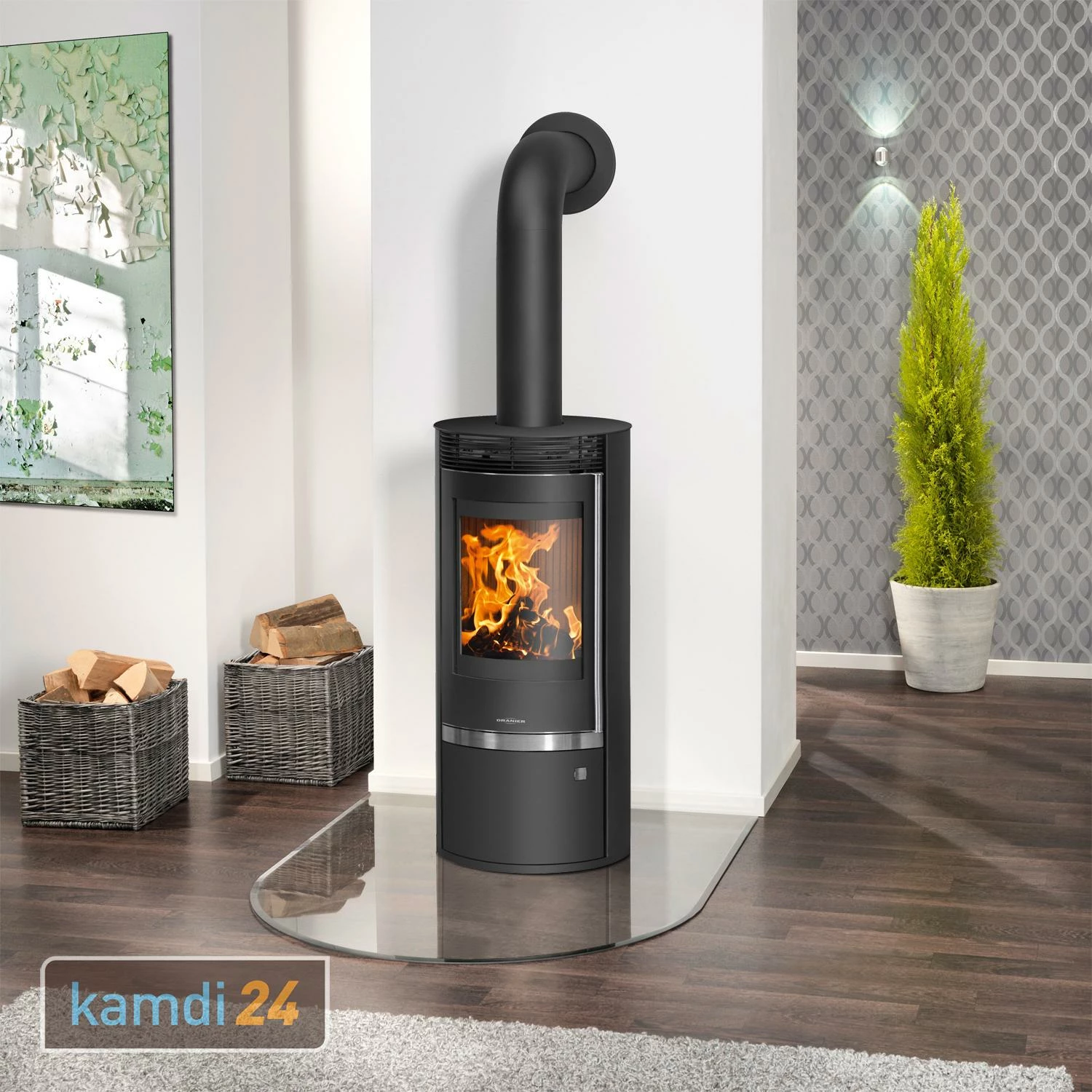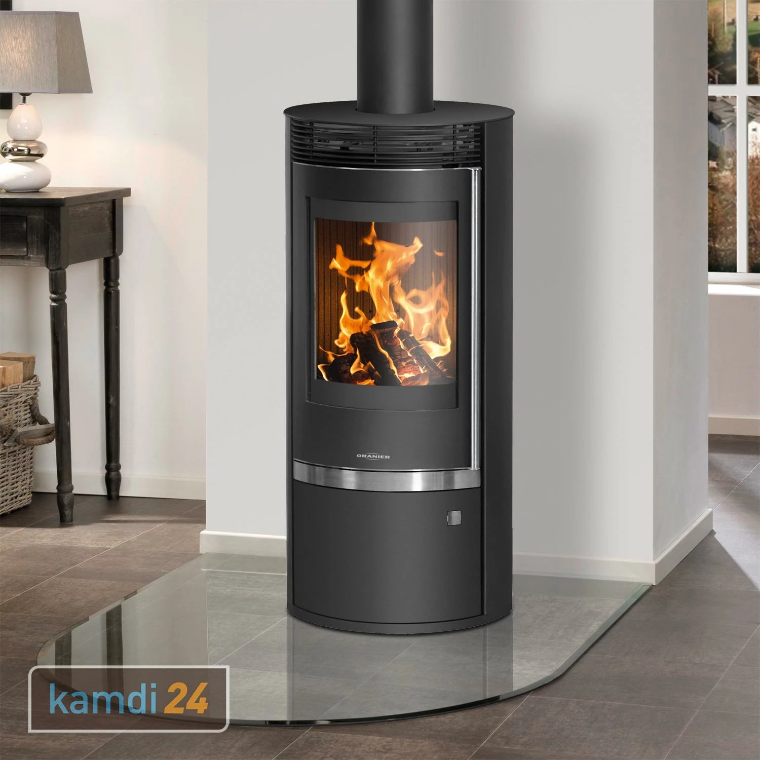 Der von beheizt Räume bis . Sein edles Design aus schwarzem Stahl mit Edelstahlapplikationen unter dem Brennraum und einer Abdeckplatte wahlweise aus Glas, Keramik, Naturstein oder Stahl machen den formschönen Holzofen zu einem Blickfang in jedem Raum.