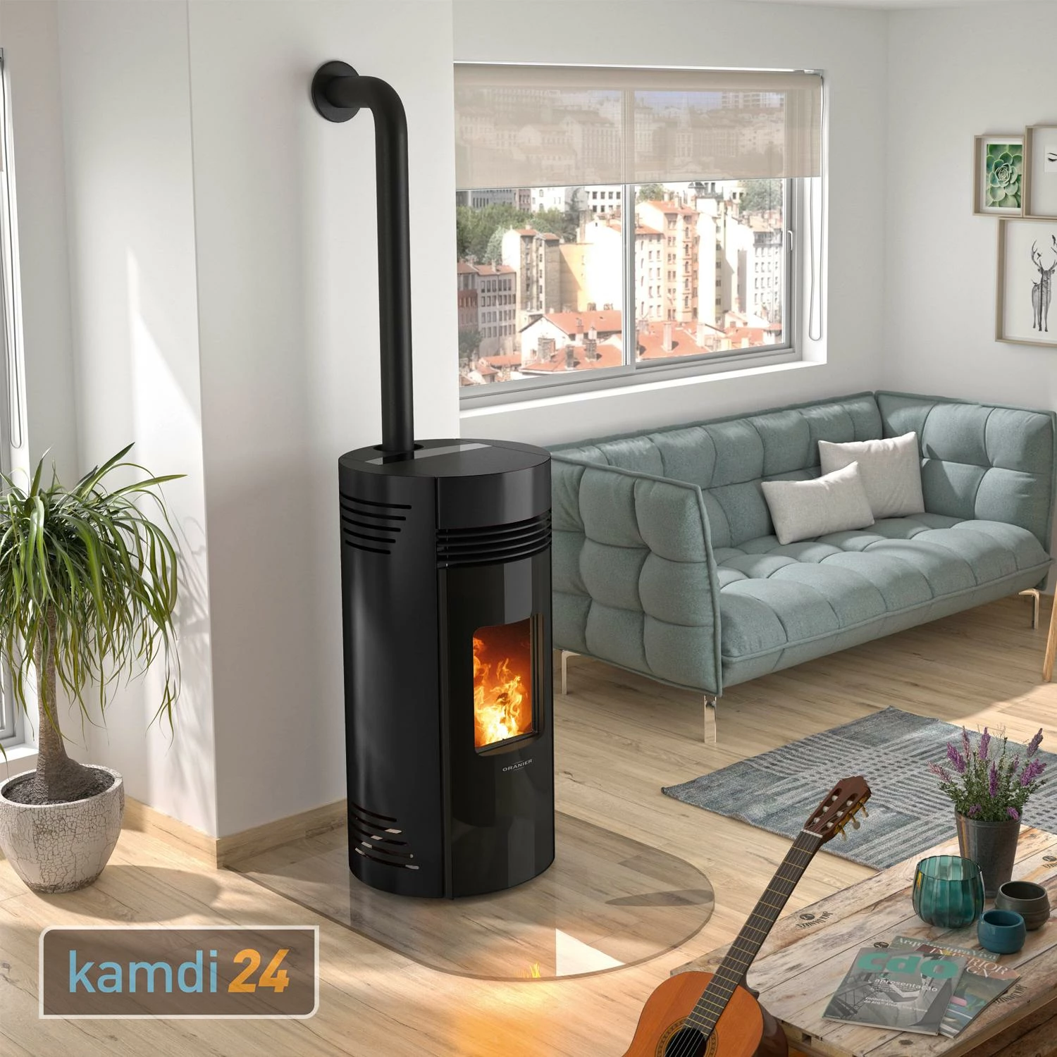 Der Tank von fasst 24 kg Pellets, wodurch der Ofen bis zu 54 Stunden heizen kann, ohne dass Brennstoff nachgefüllt werden muss. Einmal bestückt, genießen Sie lange die Wärme und der Pelletofen erledigt den Rest.