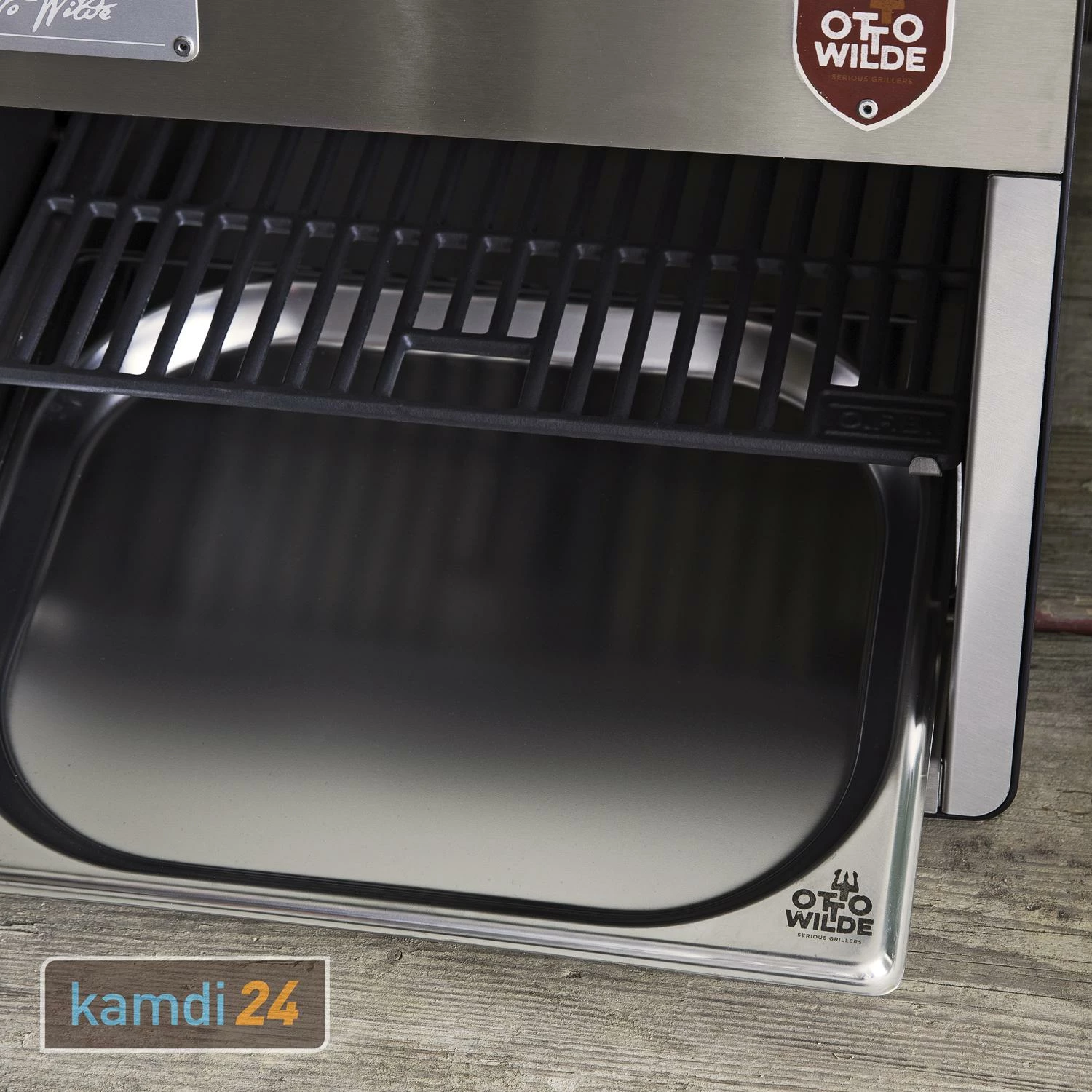 Die von hält Ihren Otto Wilde Grill beim Grillen sauber. Sie fängt herabtropfendes Fett und Fleischsaft auf. Wenn Sie den herausziehen, fährt die Schale mit. Ihre Verarbeitung aus Edelstahl ermöglicht es, sie im Anschluss an das Grillen in der Spülmaschine zu reinigen. Um die Schale aus dem Grill zu heben, können Sie nutzen.