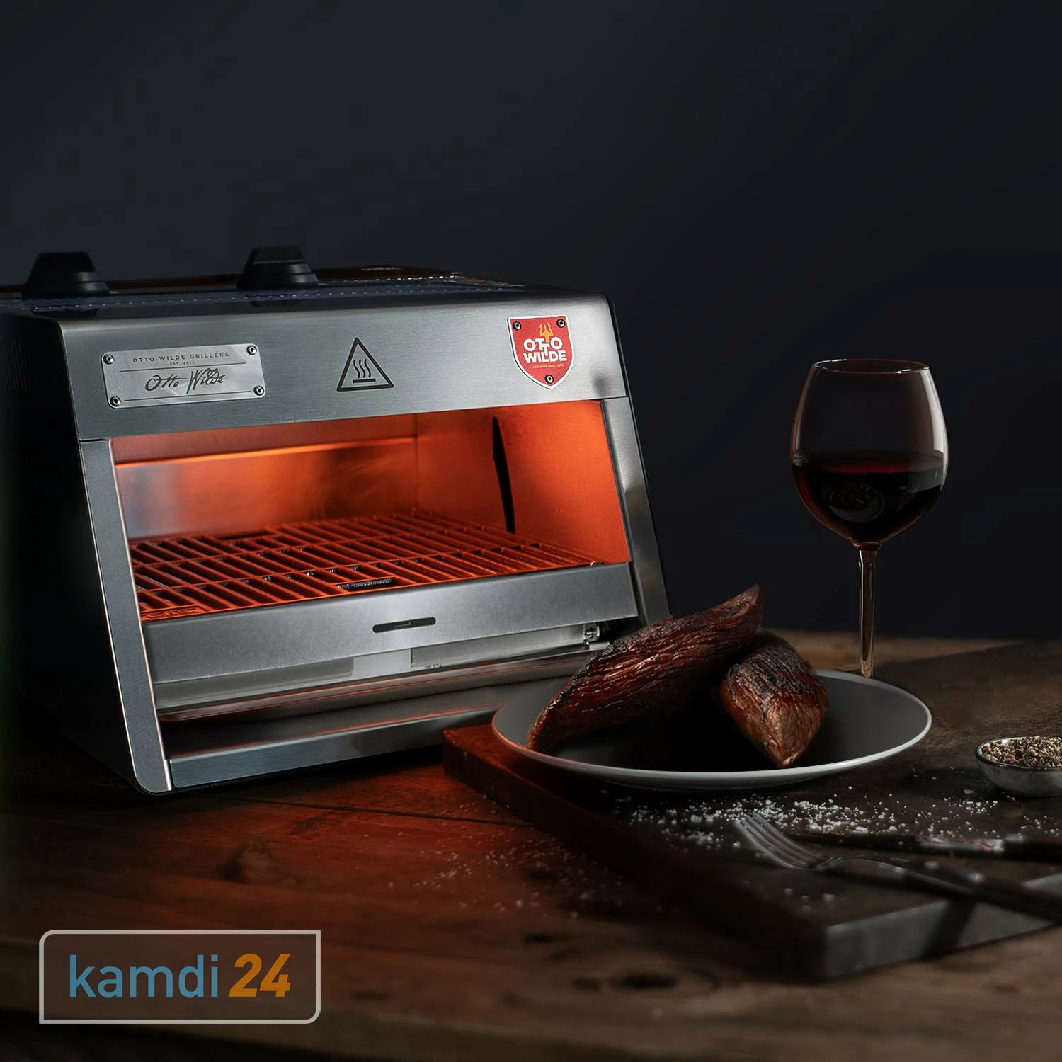 Durch seine zwei Infrarot-Gasbrenner erreicht der Brennertemperaturen von bis zu 900 °C. Die Hitze trifft von oben auf das Grillgut und sorgt für die Maillard-Reaktion, welche die Kruste goldbraun und kross und das Innere zartrosa und saftig werden lässt. Die hohen Temperaturen sorgen für kurze Garzeiten. Die beiden Brenner sind stufenlos und individuell regelbar, was eine präzise Einstellung der Grilltemperatur ermöglicht.