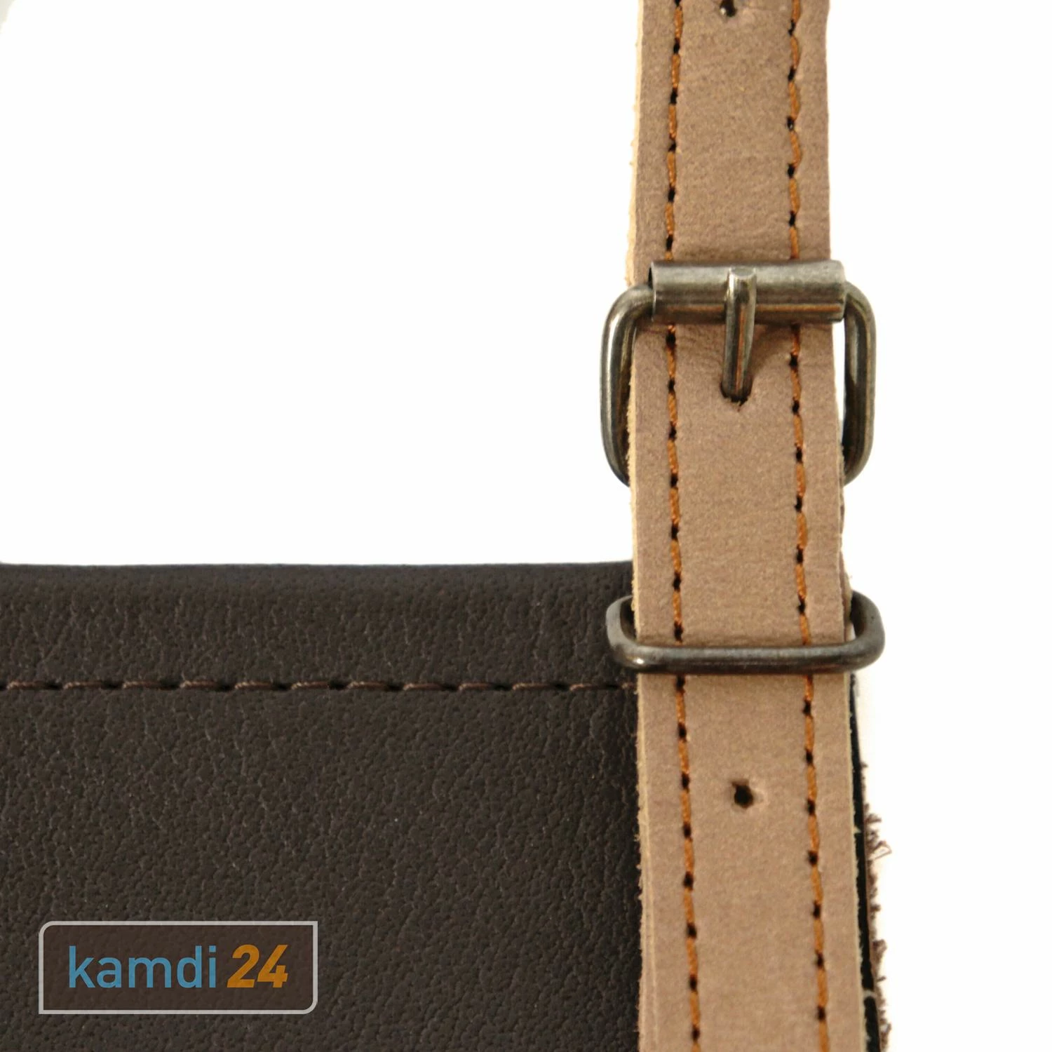✓ Farbe: Dunkelbraun mit cognacfarbenen Applikationen