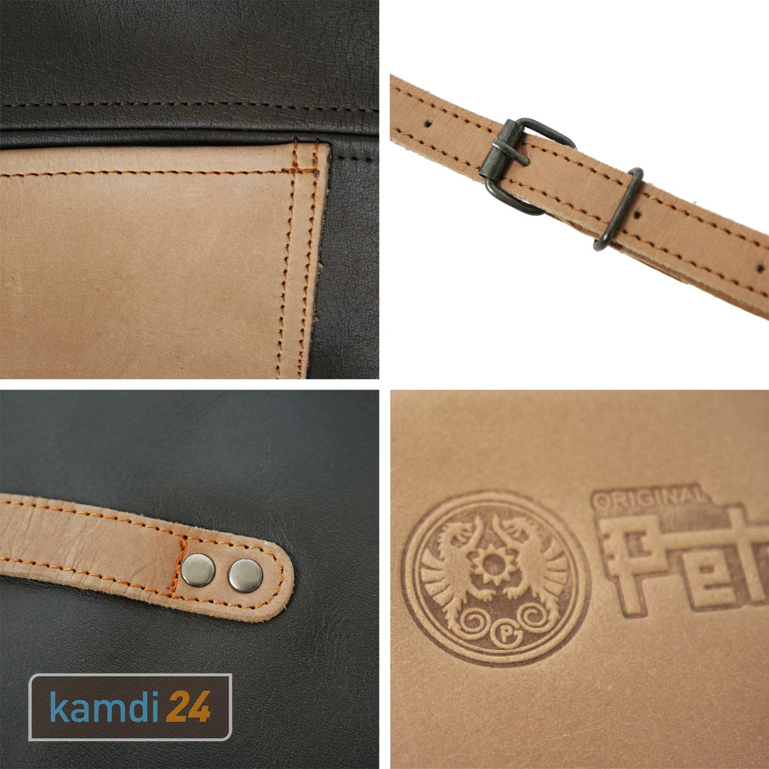 ✓ Farbe: Dunkelbraun mit cognacfarbenen Applikationen
