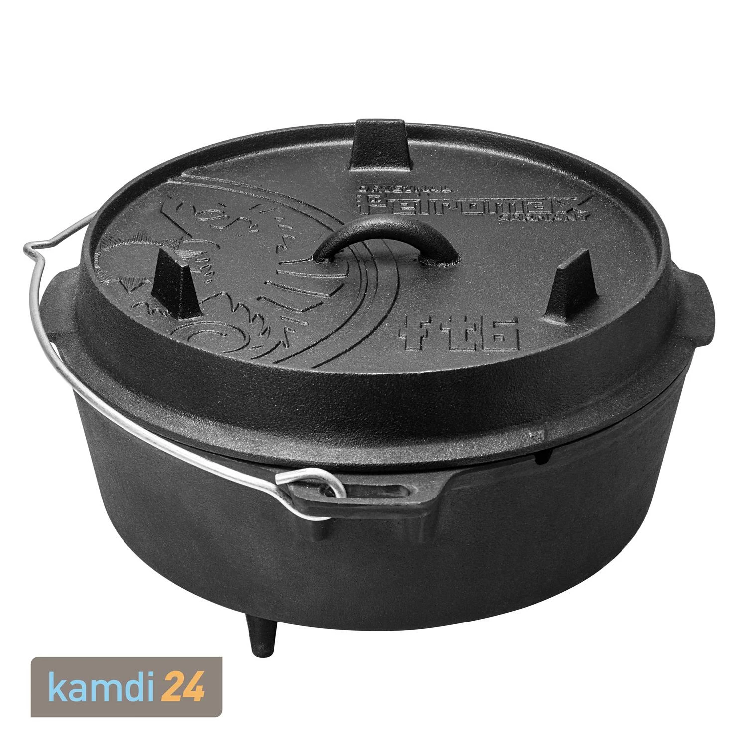 Verwenden Sie den bei Ausflügen oder im Garten entweder auf oder über dem Lagerfeuer. Wenn Sie glühende Kohlen sowohl unter dem Topf als auch auf dem Deckel platzieren, erreichen Sie eine intensive Rundumwärme, die Fleisch besonders saftig und zart werden lässt, aber auch Eintöpfe und Schmorgerichte auf einzigartige Weise gart.