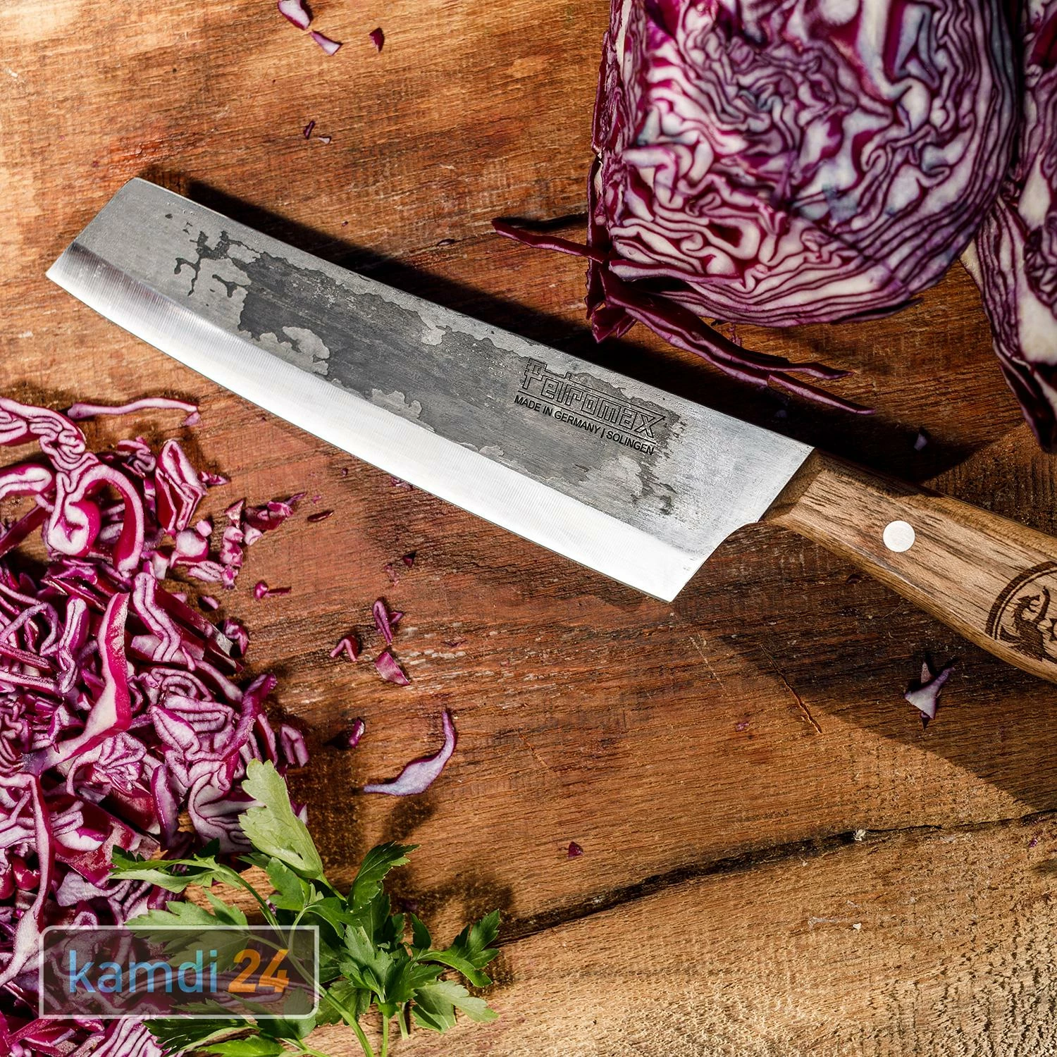 Mit dem vielseitigen Kochmesser von kannst du Nahrungsmittel sowohl schneiden und hacken als auch wiegen: Es eignet sich für Fleisch, Fisch und Gemüse gleichermaßen. Die hochwertige, in Solingen ist besonders scharf und schneidet mühelos Zutaten in der heimischen wie in der Draußen-Küche.
