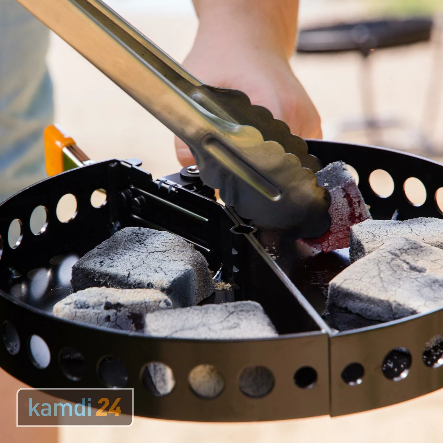 Die Kohlenschale fasst 14 bis 18 handelsübliche und sorgt so für ordentlich Hitze unter Ihrem Grillgut. Die ausziehbaren Griffe ermöglichen ein sicheres Handling. Dank ihres gelochten Randes kann die Schale zudem als Anzündkamin genutzt werden. Natürlich können Sie Ihren auch direkt auf die Kohlenschale mit den glühenden Grillbriketts stellen und so den Boden darunter schonen.