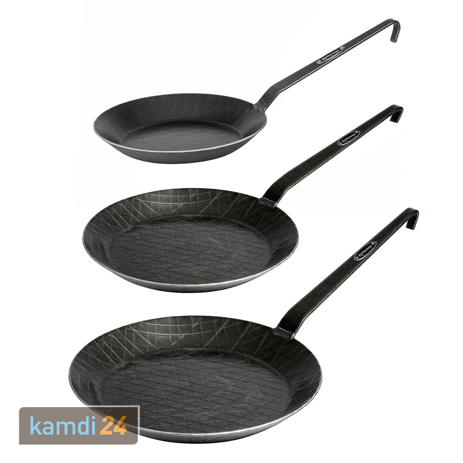 Im kamdi24-Shop erhalten Sie ein bestehend aus den drei schmiedeeisernen Pfannen , und von Petromax.