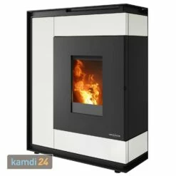 Oranier Boreas Aqua Wasserführender Pelletofen Sintered Stone Seidenweiß, Rauchabgang Oben