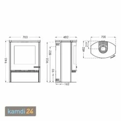 TermaTech TT30G Kaminofen Stahl Schwarz, 3-seitige Verglasung, Rauchrohr Oben