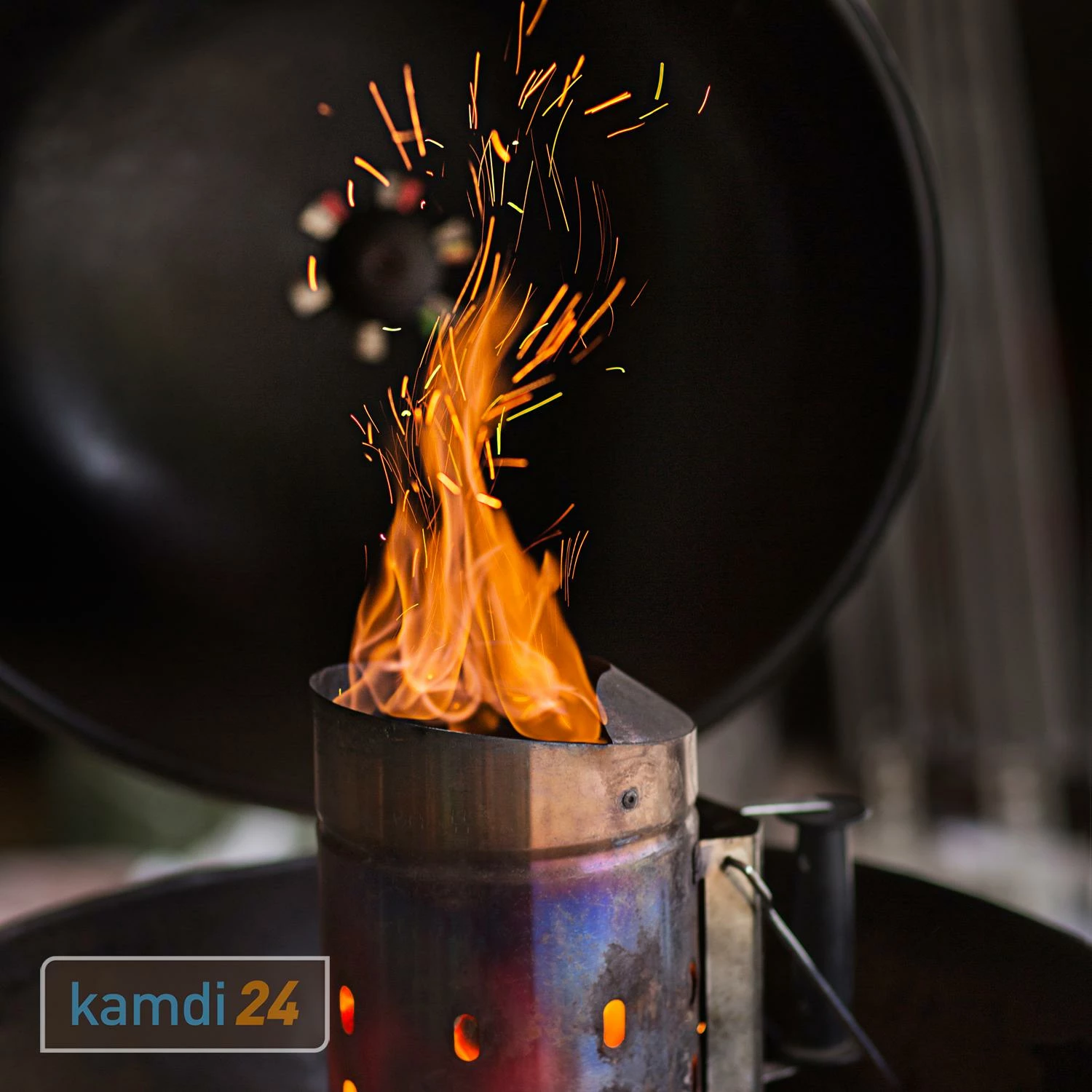 Der von gewährleistet ein bequemes, gleichmäßiges und schnelles Entzünden von oder . Dank des füllen Sie die glühenden Kohlen sicher in den Grill. Der große Griff mit garantiert einen festen Halt; der sorgt für ein kontrolliertes Ausschütten der heißen Kohlen.