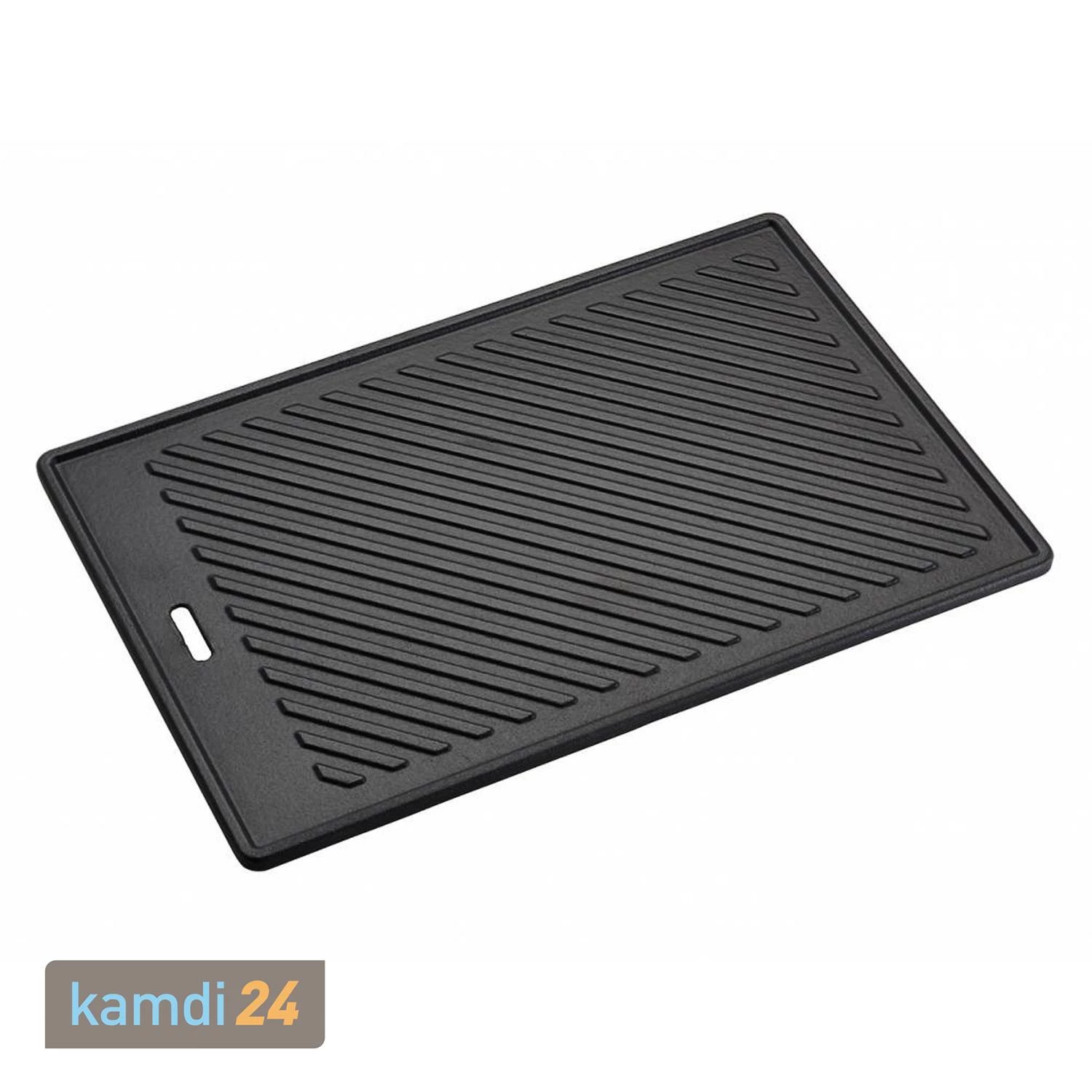 Auf der geriffelten Seite garen Sie Grillgut oder Gemüse besonders schonend. Mit der glatten Seite bereiten Sie Meeresfrüchte, Bacon, Pancakes oder Bratkartoffeln zu, ohne dass etwas am Rost hängen bleibt. Dank der kann überschüssiges Fett abfließen.