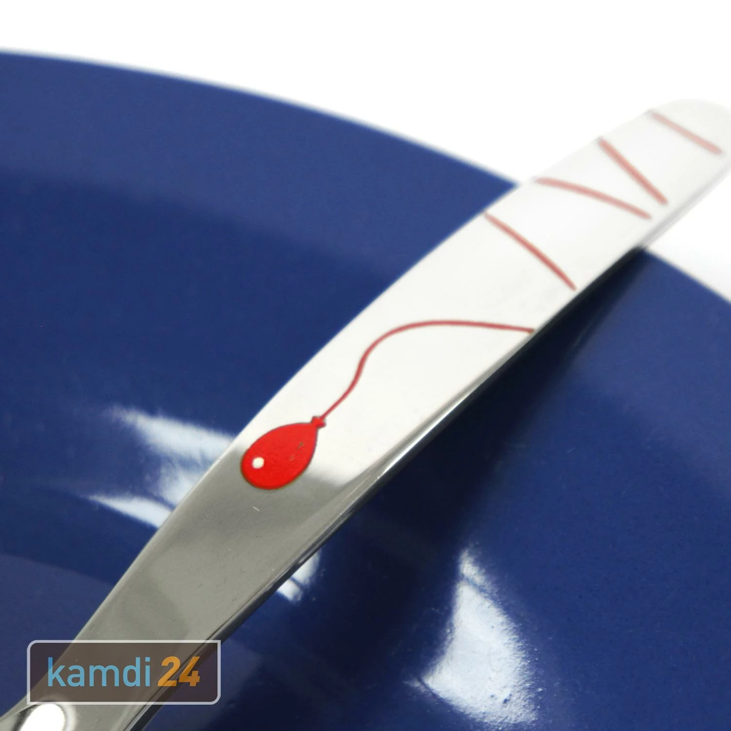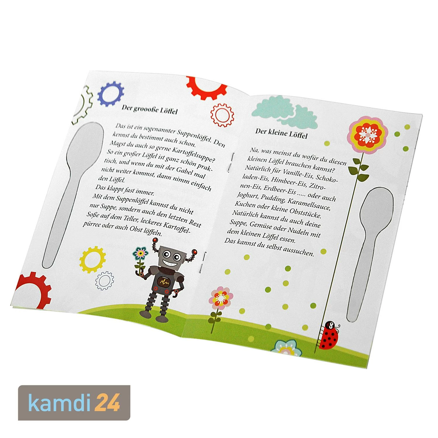 Das verspielte von wird Ihren Nachwuchs begeistern und ist auf die Bedürfnisse kleiner Kinderhände abgestimmt. Das Set besteht aus einer Gabel, einem Messer, einem großen und einem kleinen Löffel. Es ist für Kinder ab 3 Jahren geeignet. Sie können das Besteck mühelos in der Spülmaschine reinigen. Dem Set ist außerdem eine Geschichte zum Vorlesen beigefügt.
