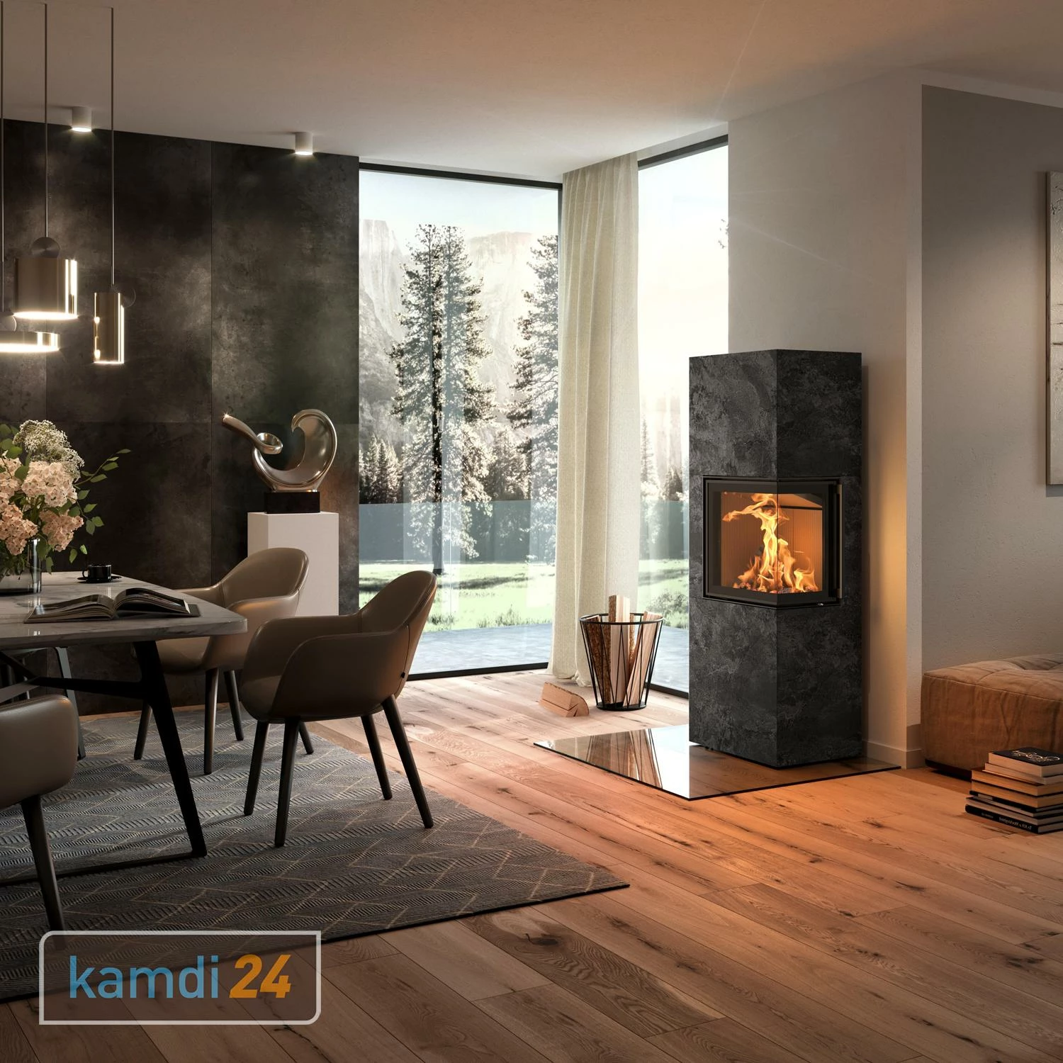 Der von verbreitet wohlige Wärme und eine angenehme Atmosphäre. Betrachten Sie die lodernden Flammen bei diesem gleich von zwei Seiten aus und erfreuen Sie sich dadurch an maximalem Feuergenuss. besitzt eine klappbare Feuerraumtür mit Anschlag links.