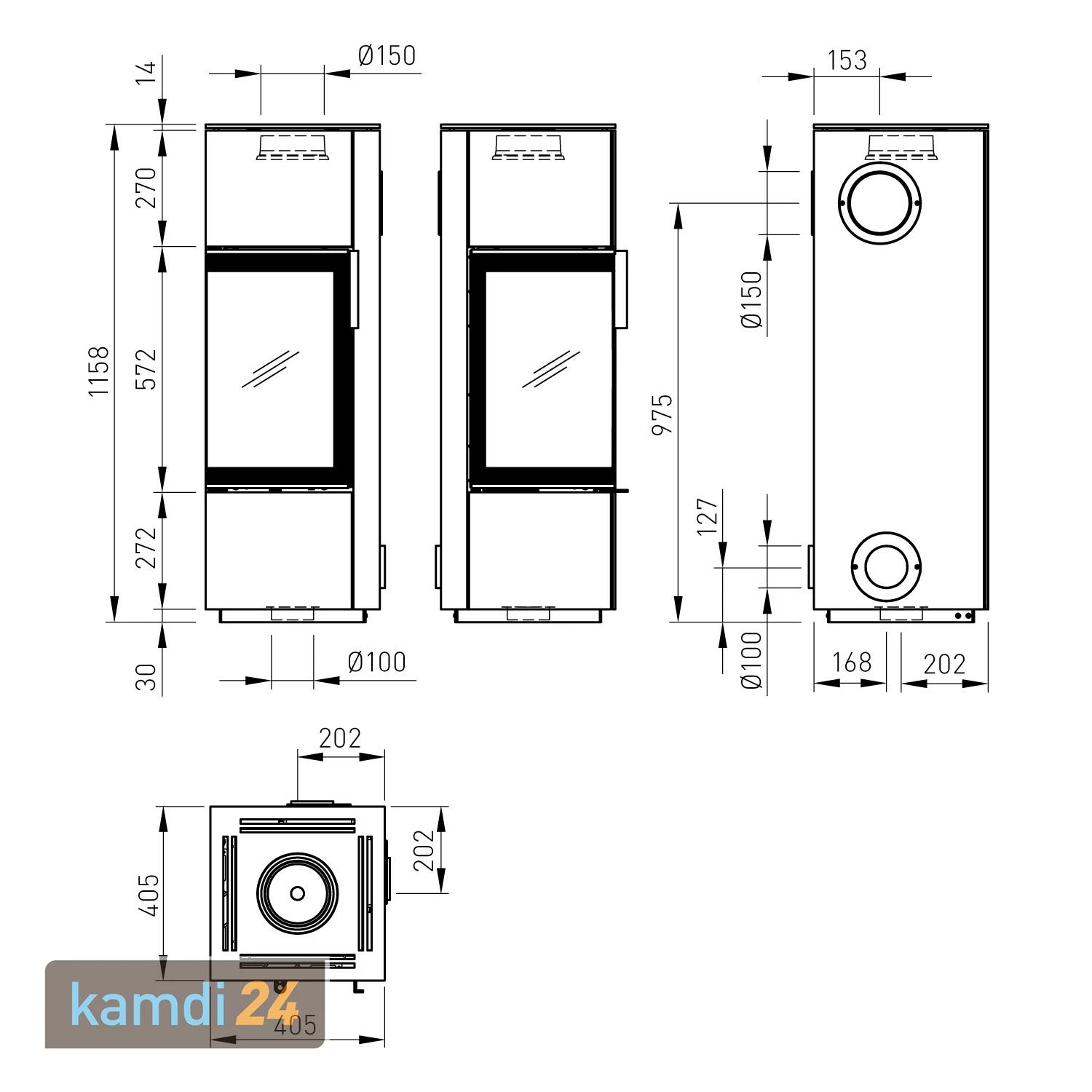 Standardmäßig liefern wir Ihnen mit einem oberen Rauchrohranschluss und einem Zuluftanschluss unten. Optional können Sie den Ofen aber auch mit Rauchrohranschluss hinten oder seitlich und/oder Zuluftanschluss hinten erhalten. Bitte teilen Sie uns bei Bedarf Ihre gewünschte Konfiguration ganz einfach über die Schaltfläche “Angebot anfordern” mit.