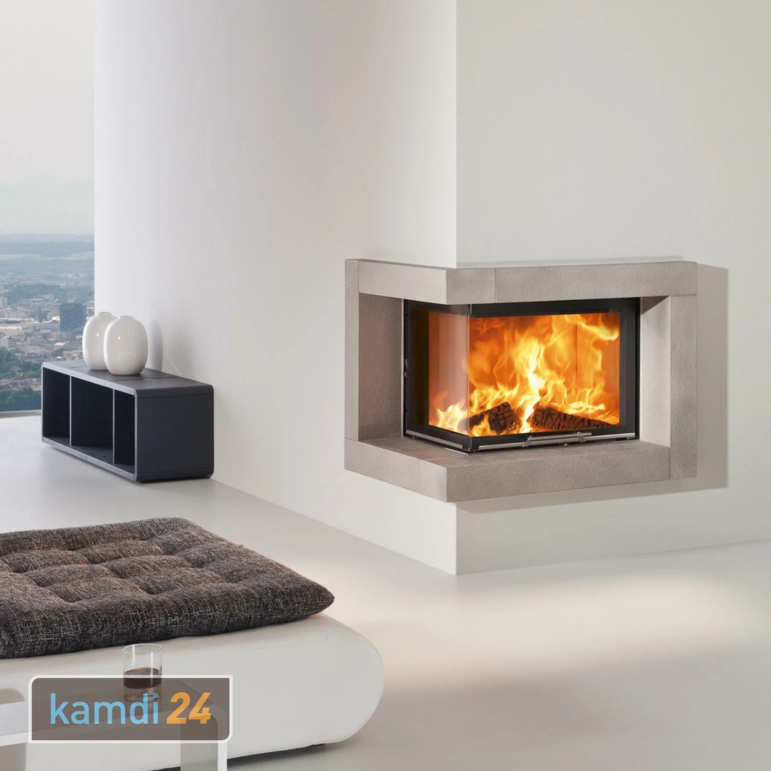 Mit dem wasserführenden hat um die Ecke gedacht.Die Eckbrennraumtür ist an den Seiten schwarz eingefasst. Damit wirkt das Feuer im Kamin wie ein Kunstwerk und lässt jeden Raum edel wirken. Mit setzen Sie Ihre Ecken besonders individuell in Szene – verkleiden Sie Ihren Kamineinsatz ganz nach Ihrem Geschmack.