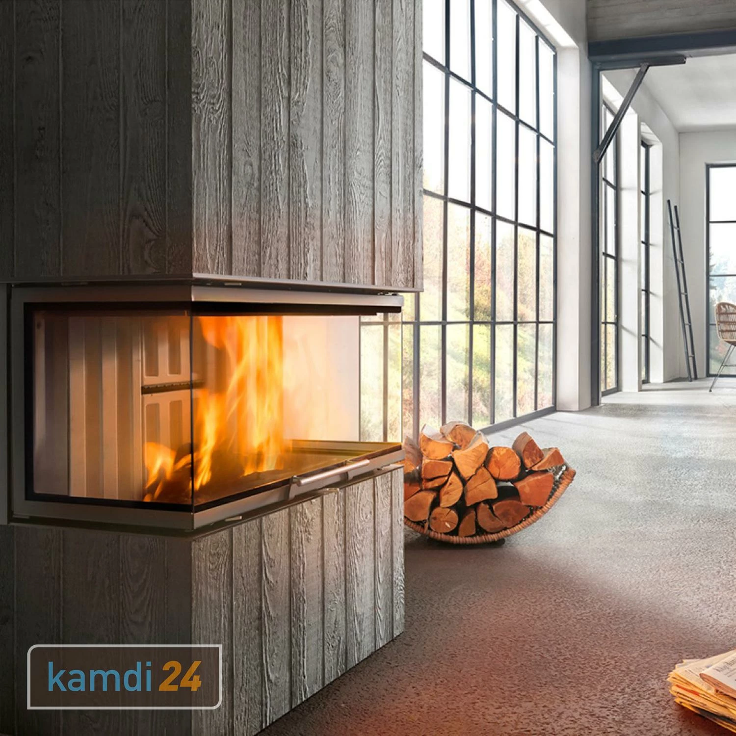 ✓ Von drei Seiten auf das Feuer blicken