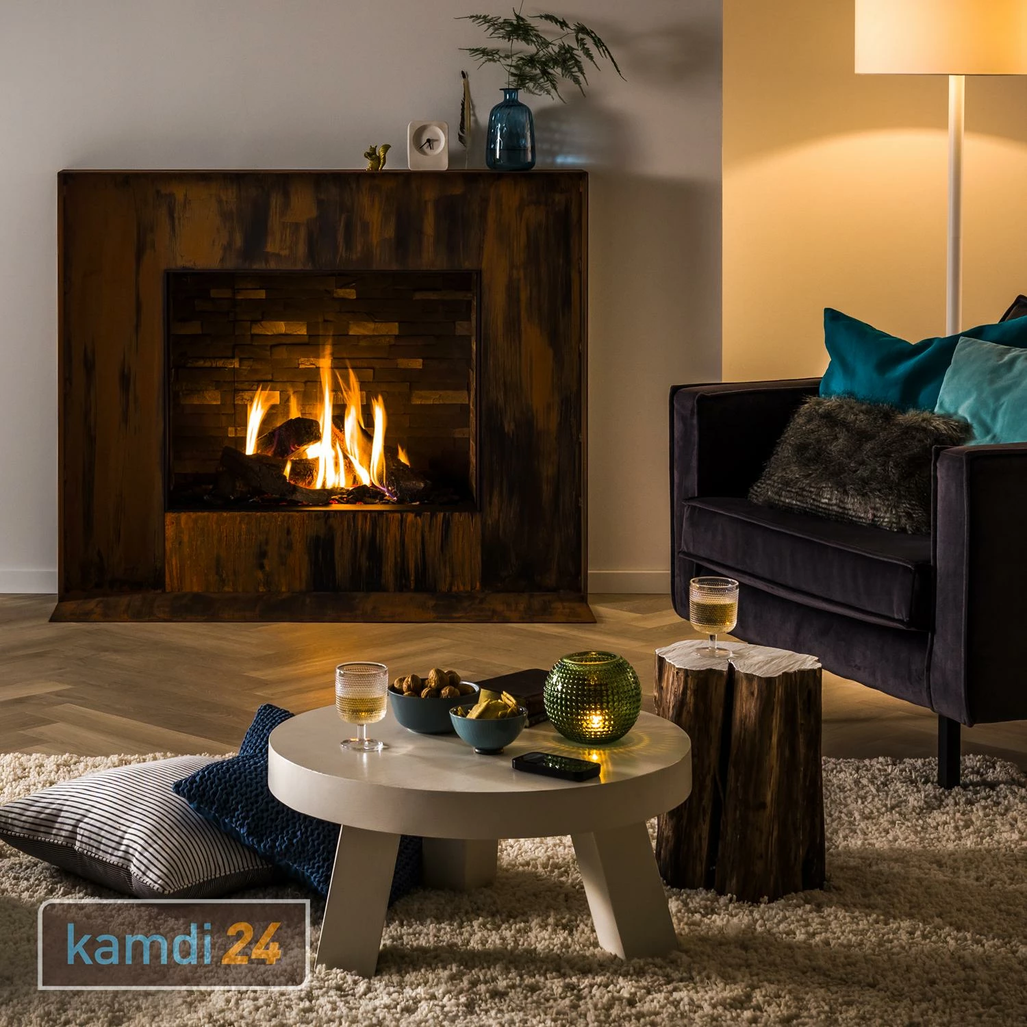Egal ob Sie sich für eine Verkleidung in der Optik eines klassischen Kaminsims entscheiden oder eine individuelle Einbauvariante wählen, der von zieht in jedem Fall alle Blicke auf sich. Das Flammenbild sieht einem echten Holzfeuer zum Verwechseln ähnlich und wird durch modernste Technik sowie im Brennraum erzeugt. Mit dem zusätzlich erhältlichen bietet das Gerät selbst nach dem Heizen noch das volle Holzkaminflair. Die schlichte Rückwand aus anthrazitfarbenem Stahl verleiht ein schickes Aussehen. Wahlweise stehen Ihnen aber auch Rückwände aus hochglänzendem Schwarzglas, mit Steinmotiv oder schwarzen Rillen zur Verfügung – gestalten Sie sich den Gas Kamineinsatz ganz nach Ihren Wünschen.