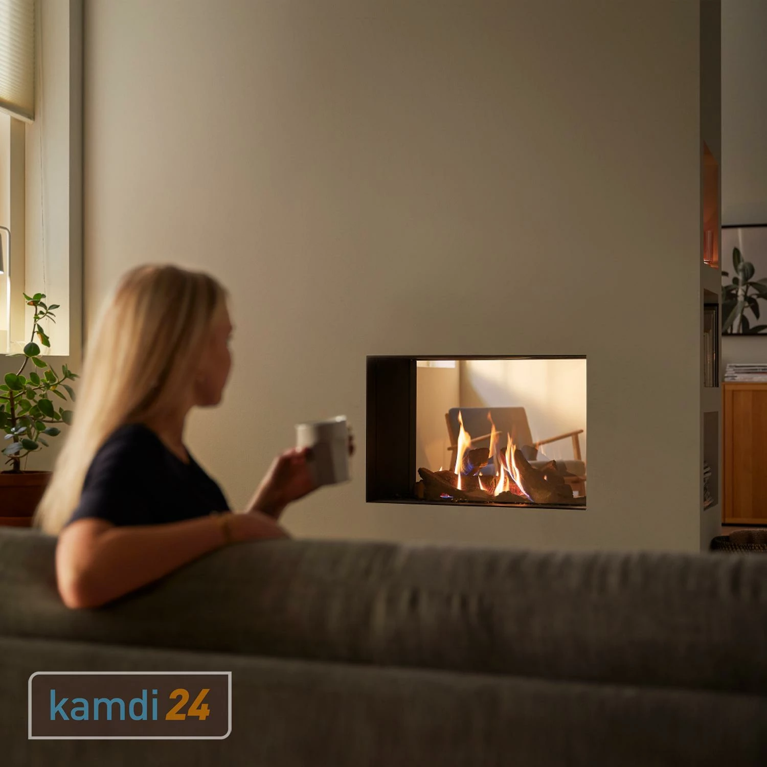 Die magische Schönheit eines Kaminfeuers gleich von zwei Räumen aus genießen – dies ermöglicht der von . Entzünden Sie die Flammen auf Knopfdruck mit der mitgelieferten und erleben Sie dank der im Brennraum ein Flammenbild, welches sich kaum von dem eines klassischen Holzfeuers unterscheiden lässt. Mit dem zusätzlich erhältlichen wird dieser Effekt sogar noch verstärkt.