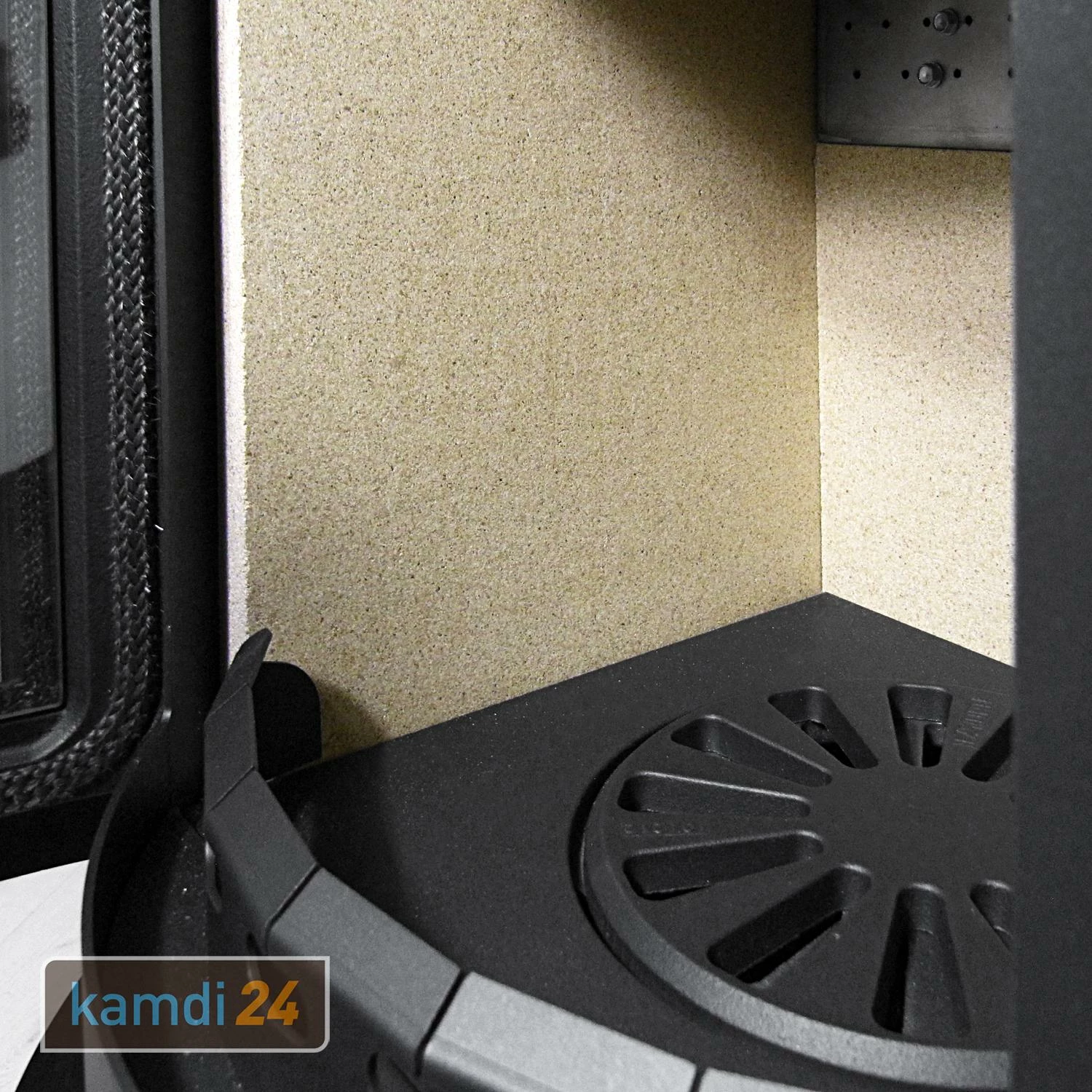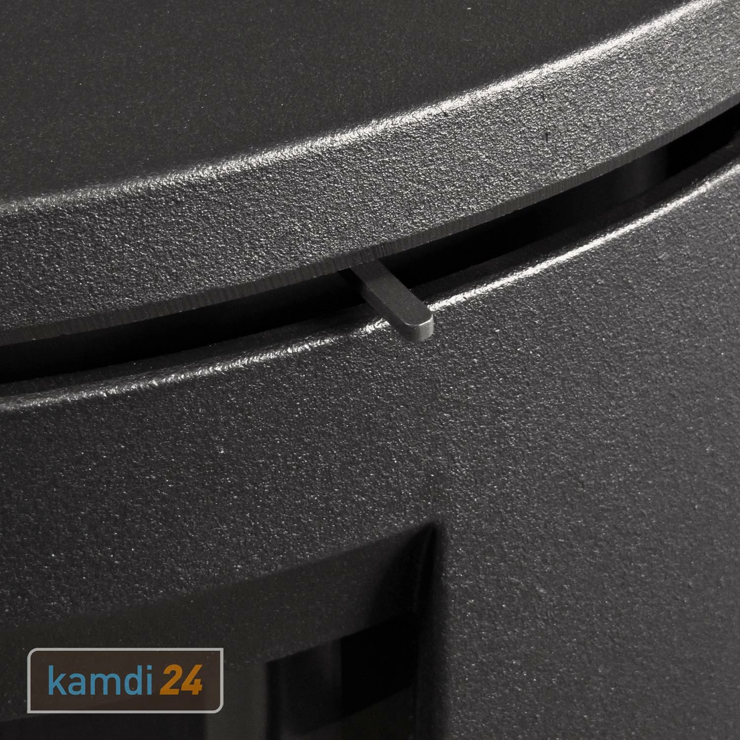 Durch seine schlichte Gestaltung in Stahl Schwarz passt er hervorragend in jeden Raum. Die selbstschließende Tür ist aus gefertigt. Auch der Brennraumboden sowie der Rüttelrost bestehen aus diesem Material. Bei der Aufstellung hat man freie Hand, da sich das Rauchrohr oben oder an der Ofenrückwand anbringen lässt.