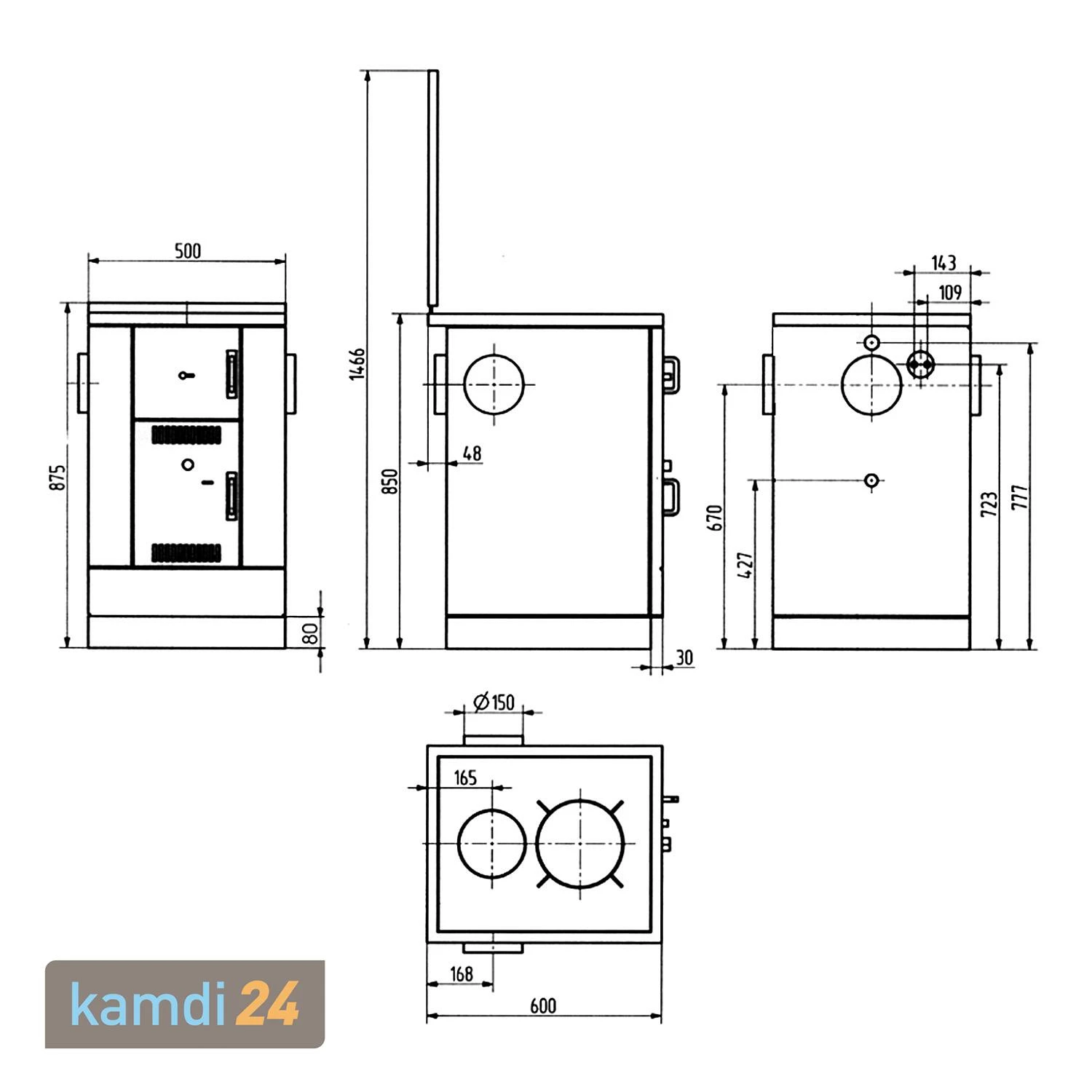 Der Küchenofen verfügt über eine zum Anschluss an Ihre Zentralheizungsanlage, sodass sich der K 158 nicht nur zum Kochen oder Braten eignet, sondern auch als Zentralheizung und zur Warmwasserbereitung. Das Gerät arbeitet dabei unabhängig von Strom, Gas oder Öl.