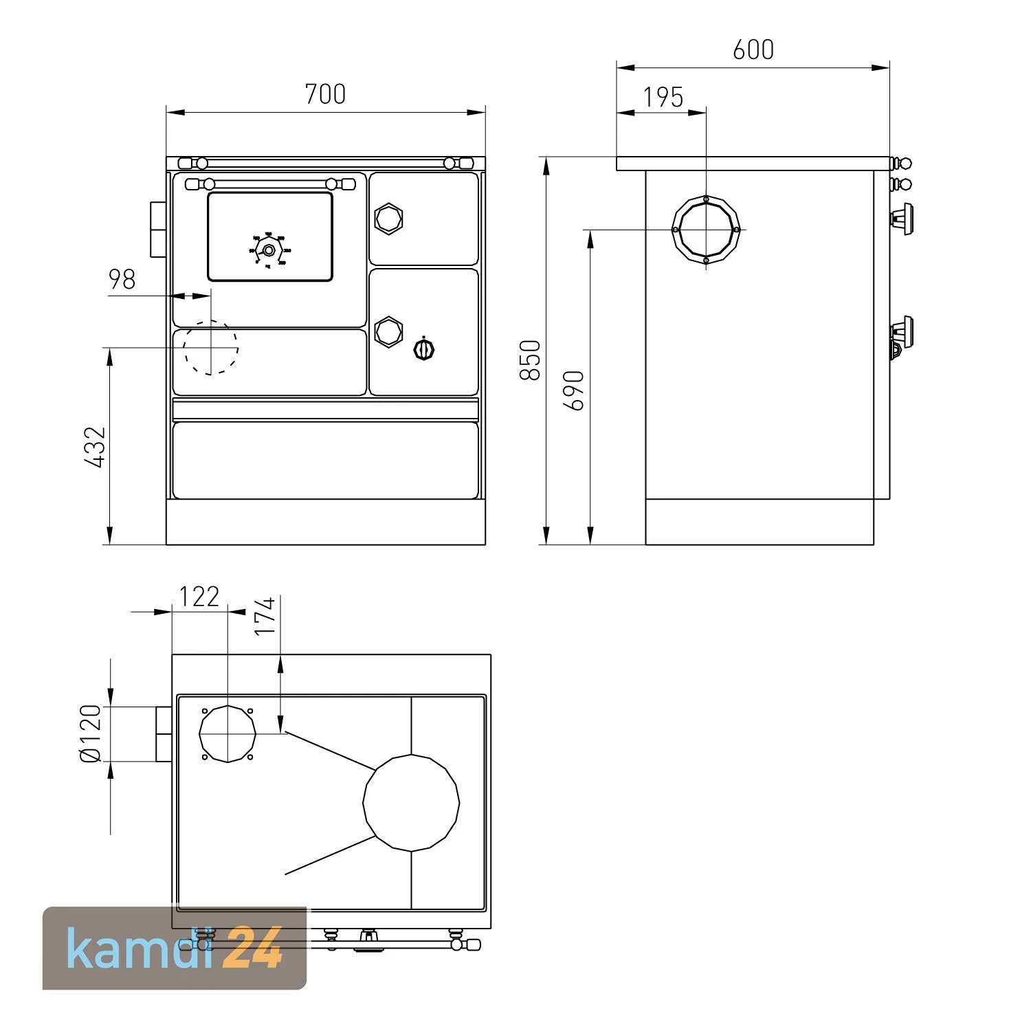 Der garantiert eine schadstoffarme Verbrennung bei hohem Wirkungsgrad – das ist nicht nur gut für die Umwelt, denn Sie sparen dadurch auch noch Brennstoff. Die geteilten Füll- und Aschetüren am bieten maximalen Komfort bei der Bedienung und Reinigung des Holzherdes. Für den Anschluss an den Schornstein können Sie den oberen, hinteren oder seitlichen Rauchrohrabgang des Küchenofens nutzen. Die schicke steht Ihnen in vielen verschiedenen Farben zur Auswahl und Sie erhalten K 176 A 70 bei uns sowohl mit Backfach links oder rechts. Treffen Sie Ihre Entscheidung einfach über unser Varianten-Menü.