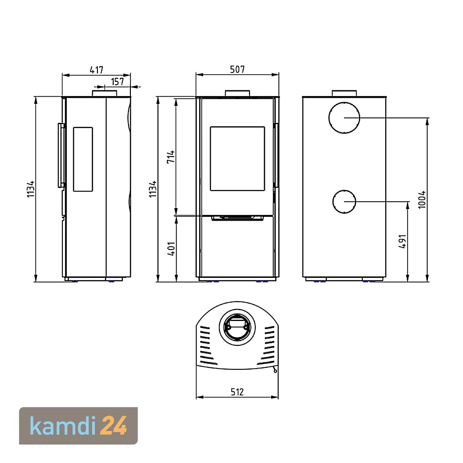 Unter dem Brennraum besitzt der ein großzügiges Holzfach, das mit einer Tür geschlossen werden kann. Darin können Sie Brennholz lagern, damit Sie stets Nachschub griffbereit haben.