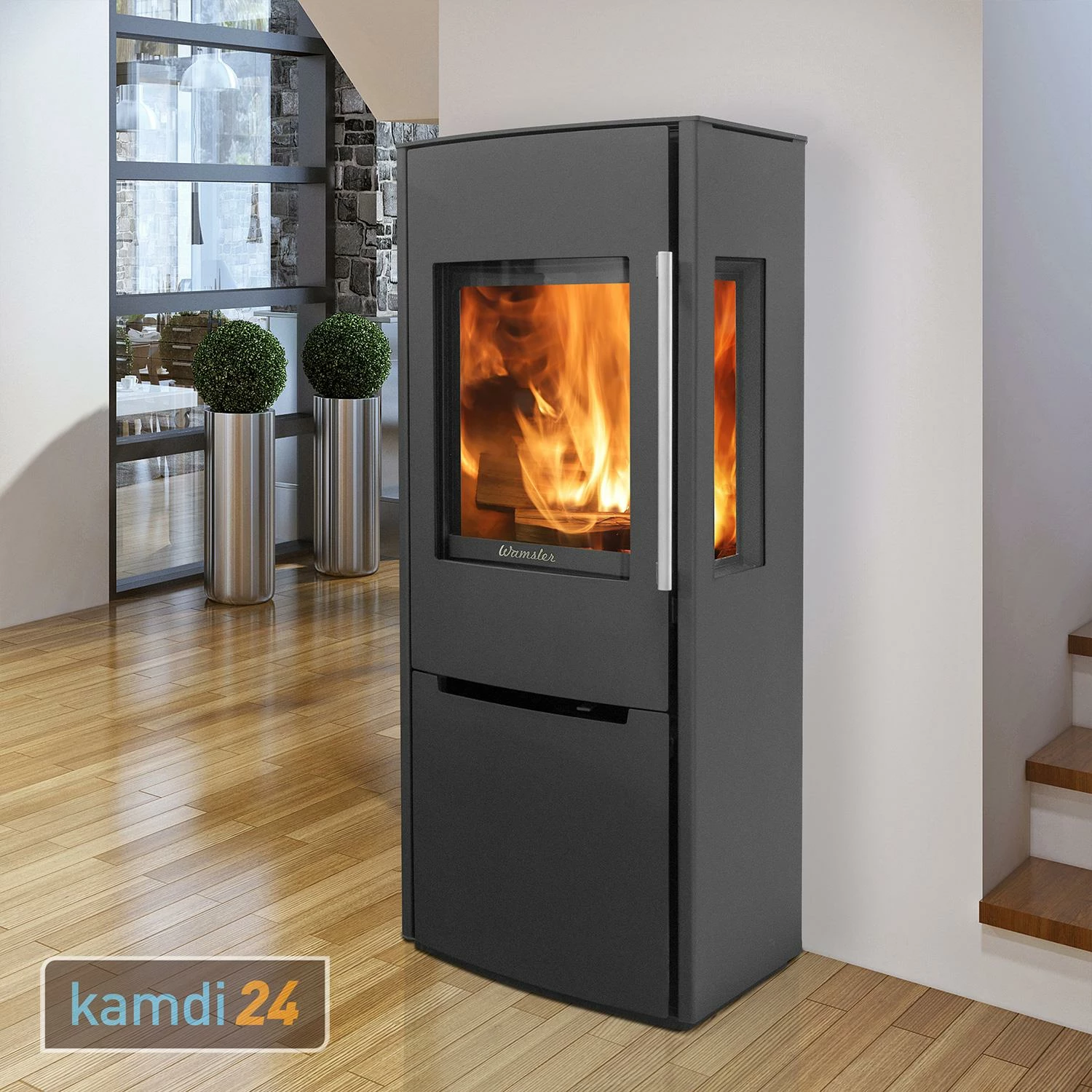 Den Wamsler-Kaminofen Pylon 3G finden Sie in unserem Kamin-Shop auch als Variante mit nur einem Sichtfenster als .
